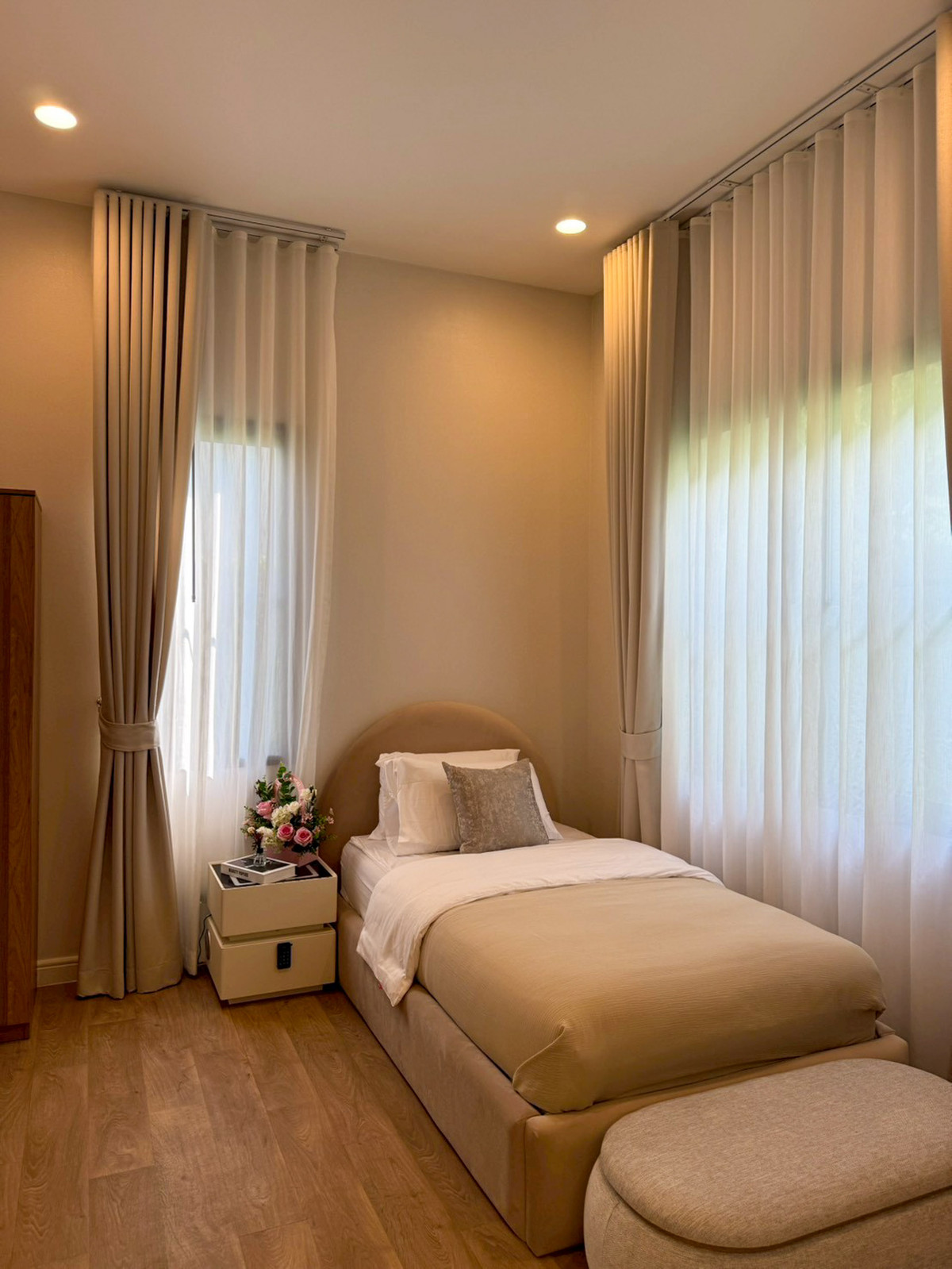 บ้านเดี่ยวหรู โครงการ Narasiri Phahon–Watcharaphol – 4 ห้องนอน พื้นที่ใช้สอย 378 ตร.ม. ไฮไลต์ทรัพย์สิน บ้านเดี่ยวลักชัวรีระดับพรีเมียม โครงการ Narasiri Phahon–Watcharaphol บ้านใหม่ไม่เคยเข้าอยู่ ออกแบบมาเพื่อผู้ที่ให้ความสำคัญกับคุณภาพชีวิต ความเป็นส่วนตัว และความหรูหราอย่างแท้จริง ด้วยพื้นที่ใช้สอยขนาดใหญ่ การจัดสรรฟังก์ชันที่ลงตัว และบรรยากาศแบบโรงแรมระดับไฮเอนด์ เหมาะสำหรับครอบครัวผู้บริหาร ชาวต่างชาติ และนักลงทุนที่มองหาทรัพย์สินคุณภาพสูงในทำเลศักยภาพ รายละเอียดทรัพย์สิน • ประเภท: บ้านเดี่ยวหรู (ซีรีส์ใหม่ ขนาดใหญ่พิเศษ) • ขนาดที่ดิน: 90 ตารางวา • พื้นที่ใช้สอย: 378 ตารางเมตร • ห้องนอน: 4 ห้อง (ทุกห้องมีห้องน้ำในตัว) • ห้องน้ำ: 5 ห้อง • ห้องแม่บ้าน: มี พร้อมห้องน้ำส่วนตัว • ห้องครัว: 2 ครัว (ครัวโชว์ + ครัวไทย พร้อมพื้นที่ทำงานแม่บ้าน) • ห้องนั่งเล่น: 2 ห้อง แยกโซนพักผ่อนและรับแขก • ทิศบ้าน: ทิศเหนือ เงียบสงบ เป็นส่วนตัว • ที่จอดรถ: สูงสุด 6 คัน • การตกแต่ง: เฟอร์นิเจอร์ครบ พร้อมเข้าอยู่ • เพดาน: สูง โปร่ง รับแสงธรรมชาติ • ห้องนอนใหญ่: ดีไซน์หรู พร้อมพื้นที่จัดเก็บขนาดใหญ่ • ครัว: พร้อม Island และอุปกรณ์ครบครัน • พื้นที่สวน: สวนสวย พร้อมบริการดูแลสวน • อินเทอร์เน็ต: ความเร็วสูง • สภาพบ้าน: บ้านใหม่ ไม่เคยเข้าอยู่ พร้อมเข้าอยู่ทันที สถานที่ใกล้เคียง • ถนนเทพรักษ์ เชื่อมต่อวิภาวดี–รังสิต • ทางด่วนสุขาภิบาล 5 – ประมาณ 2 นาที • สนามบินดอนเมือง – ประมาณ 10 นาที • โรงเรียนนานาชาติ Harrow – ประมาณ 15 นาที • โรงเรียนนานาชาติชั้นนำอื่น ๆ – ประมาณ 10–20 นาที • ศูนย์การค้าชั้นนำ – ประมาณ 15–20 นาที • ถนนวิภาวดี–รังสิต • วงแหวนรอบนอก (โครงการขยายในอนาคต) เงื่อนไขการเช่า • ราคาเช่า: 180,000 บาท / เดือน ติดต่อ Jack Right Home Tel: คลิกเพื่อดูเบอร์โทรติดต่อ Line ID: @ascendestate Email: คลิกเพื่อดูอีเมล Website: https://www.ascendestate.asia Facebook: https://www.facebook.com/ascendestate #Narasiriพหลวัชรพล #บ้านหรูพหลโยธิน #บ้านเดี่ยวลักชัวรี #บ้านผู้บริหาร #บ้านหรูใกล้ดอนเมือง #อสังหาริมทรัพย์พรีเมียม #บ้านครอบครัวระดับไฮเอนด์ #ลงทุนอสังหาฯ #JackRightHome #AscendEstate