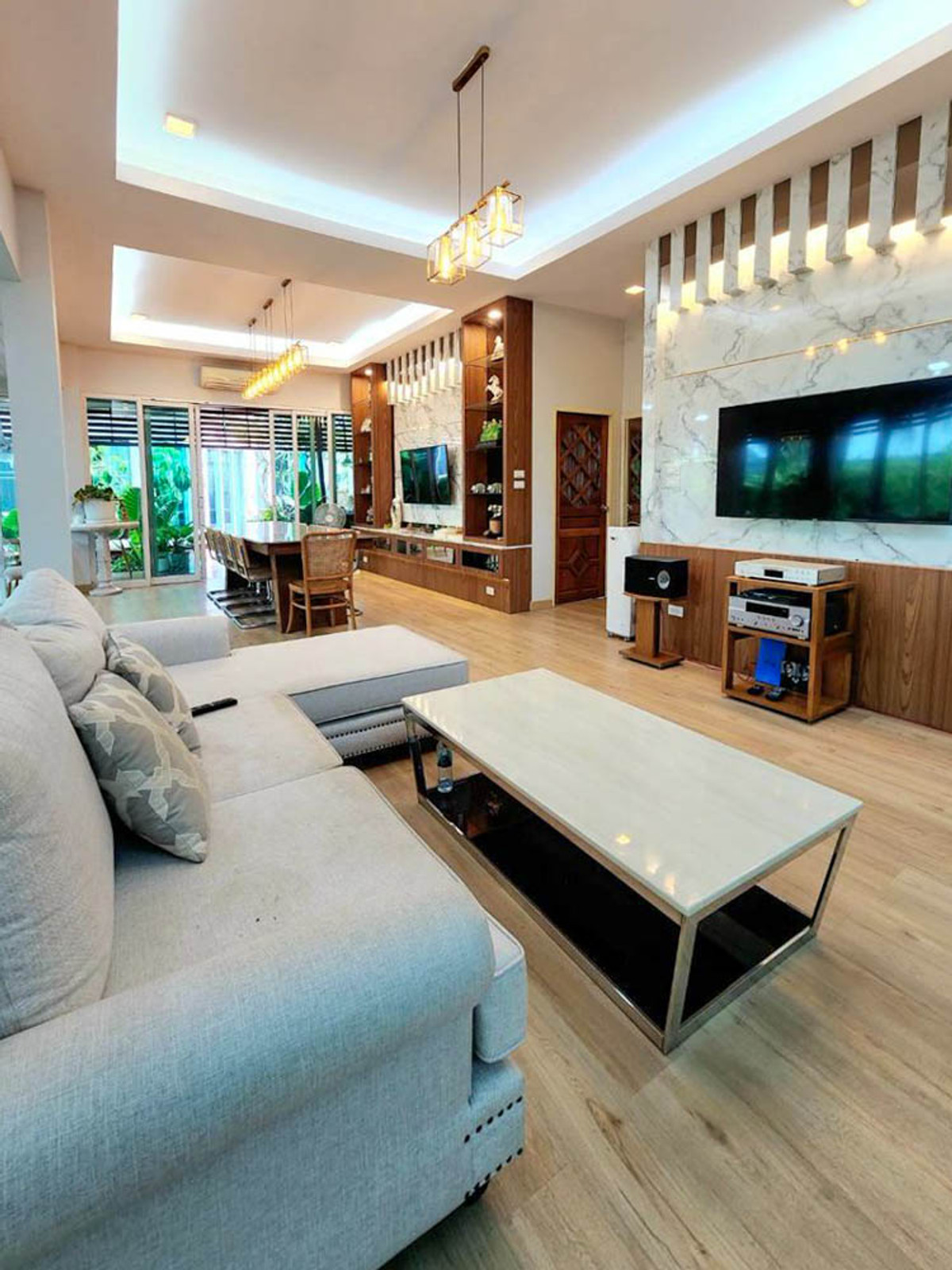 ให้เช่าบ้านสวนวิลล่าหรูสไตล์รีสอร์ท ใกล้บ้านน้ำโท้ง หางดง-สารภี จังหวัดเชียงใหม่ บ้านหลังนี้เหมาะสำหรับผู้ที่ชื่นชอบบ้านสวนขนาดใหญ่และอาศัยอยู่ในชนบทนอกเมืองเชียงใหม่ด้วยชีวิตที่เงียบสงบ ติดธรรมชาติ ร่มรื่นและน่าอยู่ - ที่ดินขนาดใหญ่ประมาณเกือบ 4 ไร่ และพื้นที่ใช้สอย 300 ตร.ม. เป็นสวนขนาดใหญ่ที่มีผลไม้เกือบทุกชนิดมากมายให้เก็บกินได้ตลอดทั้งปี ประกอบด้วยอาคารทั้งหมด 6 หลังในบริเวณเดียวกัน บ้านหลังนี้มีพื้นที่ใช้สอยขนาดใหญ่ มีทั้งหมด 5 ห้องนอน 6 ห้องน้ำ -เกสต์เฮ้าส์พร้อมบ่อปลาล้อม รอบๆ (รวมปลาคราฟทั้งหมด) - 2 ห้องครัว - โต๊ะหินอ่อนชุดรับประทานอาหารชุดใหญ่ ขนาด10 ที่นั่ง - รวมโฮมเธียเตอร์ โต๊ะพูล อุปกรณ์ฟิตเนสทั้งหมด - บ่อปลาและน้ำตก จัดสวนสวยต้นไม้ร่มรื่นรอบบ้าน - โรงจอดรถได้ 5 คัน และจอดข้างนอกได้อีกมากมาย สถานที่ใกล้เคียง: - กาดฝรั่งวิลเลจ 11 กม.(16 นาที) - ห้างบิ๊กซี หางดง 15 กม. (22 นาที) - สนามบินเชียงใหม่ 20 กม. (30 นาที) ราคาเช่า 100,000 /เดือน. รวมเฟอร์นิเจอร์และเครื่องใช้ไฟฟ้าทั้งหมด หากสนใจสามารถติดต่อเพื่อเข้าชมบ้านได้ที่คุณจอนนี่ โทร. คลิกเพื่อดูเบอร์โทรติดต่อ หรือทางLine ID: johnnijj สำหรับผู้ที่อยู่ต่างประเทศสามารถติดต่อผ่าน Whatsapp: คลิกเพื่อดูเบอร์โทรติดต่อ หรือ Wechat: +66 ( คลิกเพื่อดูเบอร์โทรติดต่อ) J Premium Homes บ้านคุณภาพ ทำเลคุ้มค่า ราคาถูกใจ ให้เราดูแล รหัสทรัพย์: CM2602081