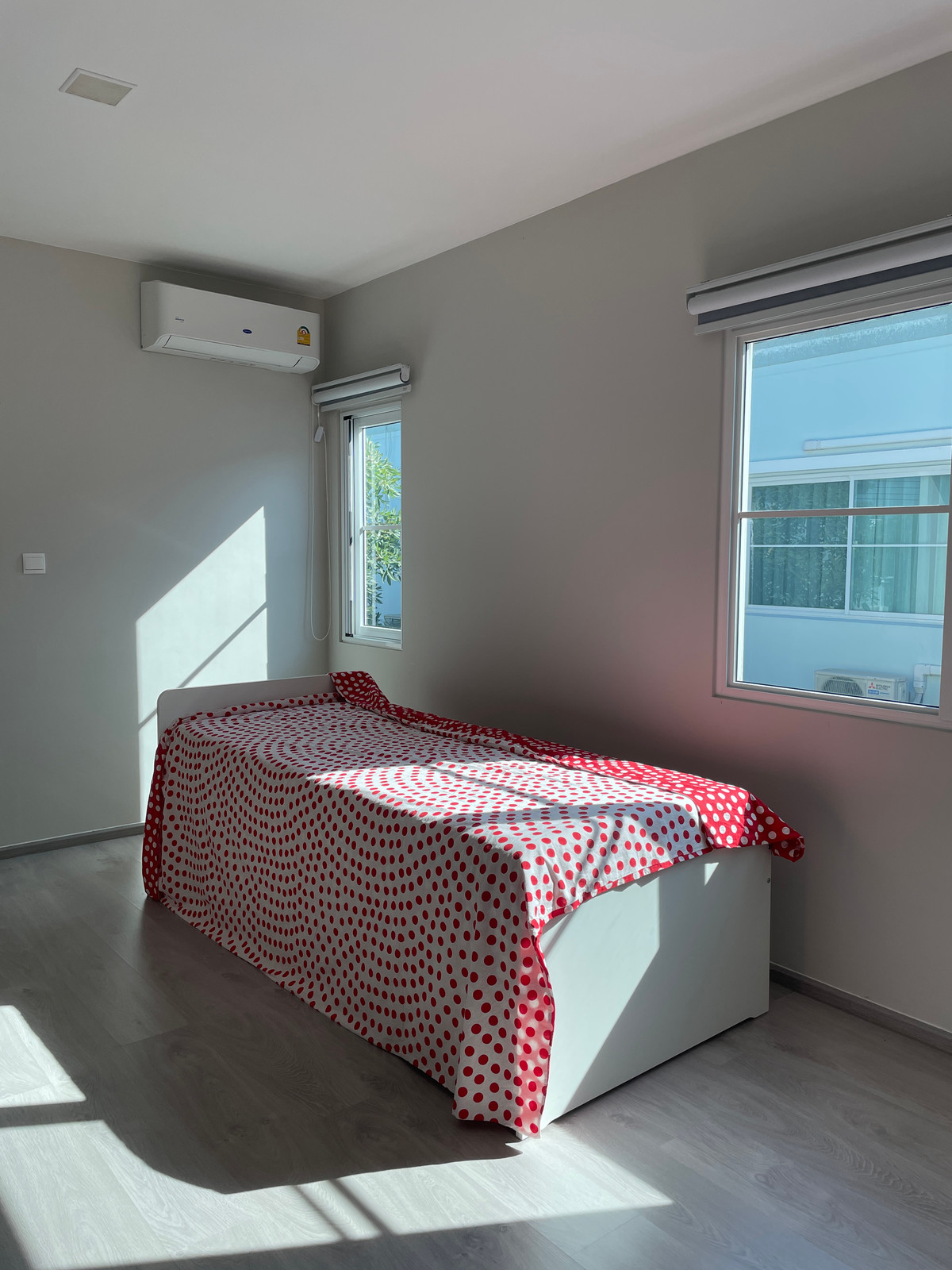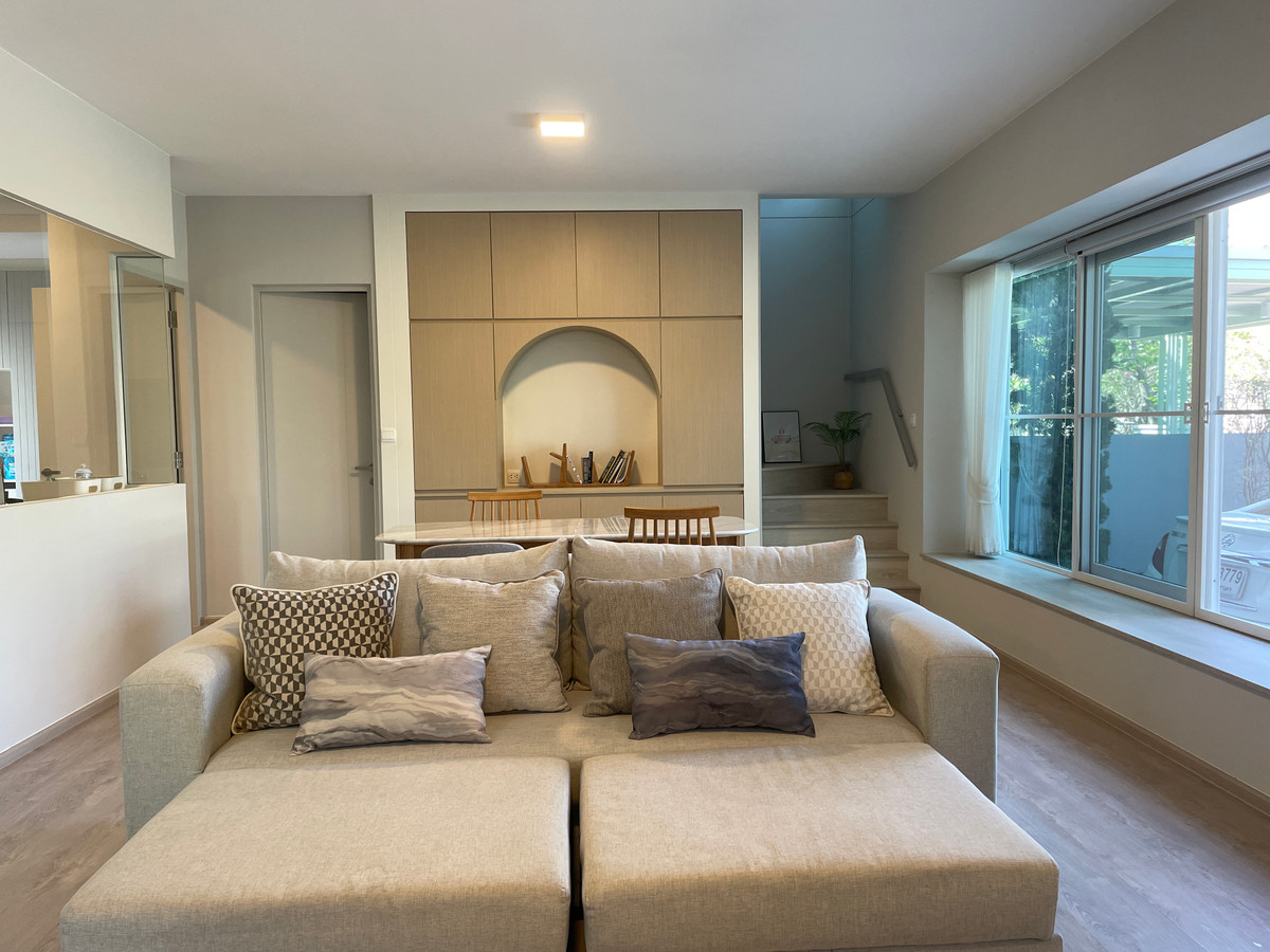 ขายบ้าน สภาพใหม่! 2 นอน 3 น้ำ ติดโซนสวน ใกล้สโมสร หมู่บ้าน Anya บางนา-รามคำแหง 2 บ้านตกแต่งพร้อมอยู่ 2 ห้องนอน 3 ห้องน้ำ พื้นที่ 168 ตร.ม. (แบบใหญ่) ที่ดิน 44 ตร.ว. จอดรถได้ 2 คัน ตำแหน่งบ้านทำเลดีมาก หน้าบ้านเป็นสวนส่วนกลาง (3 ไร่) ใกล้สโมสร ถนนหน้าบ้าน 12 ม. ไม่มีปัญหาจอดรถ เพื่อนบ้านดี สังคมในหมู่บ้านดี น่ารัก ตกแต่ง built-in สไตล์ Japandi หน้าต่างมีติดฟิล์มกันความร้อน มีมุ้งลวด มูลี่/ม่านทุกบาน แอร์ 3 ตัว เครื่องทำน้ำอุ่น 2 ตู้เย็น เตาแก๊ส ไมโครเวฟ เครื่องซักผ้า เครื่องฟอกอากาศ ม่านผ้าใบไฟฟ้าบังแดดที่จอดรถ ทำเลดีมาก อยู่ตรงข้ามโรงเรียนนานาชาติ Dulwich College Bangkok ปากซอยมี Lotus บางนา ใกล้ MEGA Bangna แค่ 5 นาที ใกล้ ม. ราม วิทยาเขตบางนา ใกล้ตลาด ราม 2 ใกล้สวนหลวง ร.9 เข้า ออก ได้หลายทาง ถนนบางนา ตราด ถนนกาญจนาภิเษก ถนนเฉลิมพระเกียรติ ร.9 ขาย 9.9 ล้านบาท ค่าโอนคนละครึ่ง ติดต่อ คุณเบลล์ โทร. คลิกเพื่อดูเบอร์โทรติดต่อ HOUSE AVAILABLE for SALE Fully furnished 2 bedrooms, 3 bathrooms house floorsize of 168 sq.m. at Anya Bangna-Ramkhamhaeng 2 project, Prawet district Land size 44 sq.wahs Superb location - Project garden in the front yard Walking distance to Gym & Pool Unit amenities: 2-car parking space Air Conditioners every room (A/C) 3 Water heater 2 Refrigerator Microwave 1 Stove 1 Washing machine 1 TV 1 Garden Project features: Project garden in the front yard 24-hours security Gym & swimming pool Kids playground area Located opposite to Dulwich College Bangkok Close to MEGA Bangna, Lotus Bangna, Ram 2 Fresh Market Get to the house from various directions i.e. Bangna Trat road, Kanchanapisek Road, or Chalermprakiat road SALE at 9.9 M THB; half-half transfer fee #housenearmegabangna #houseforrentinbangna #houseinbangna #propertyinbangkok #propertyforrent #รับฝากขายเช่าบ้าน