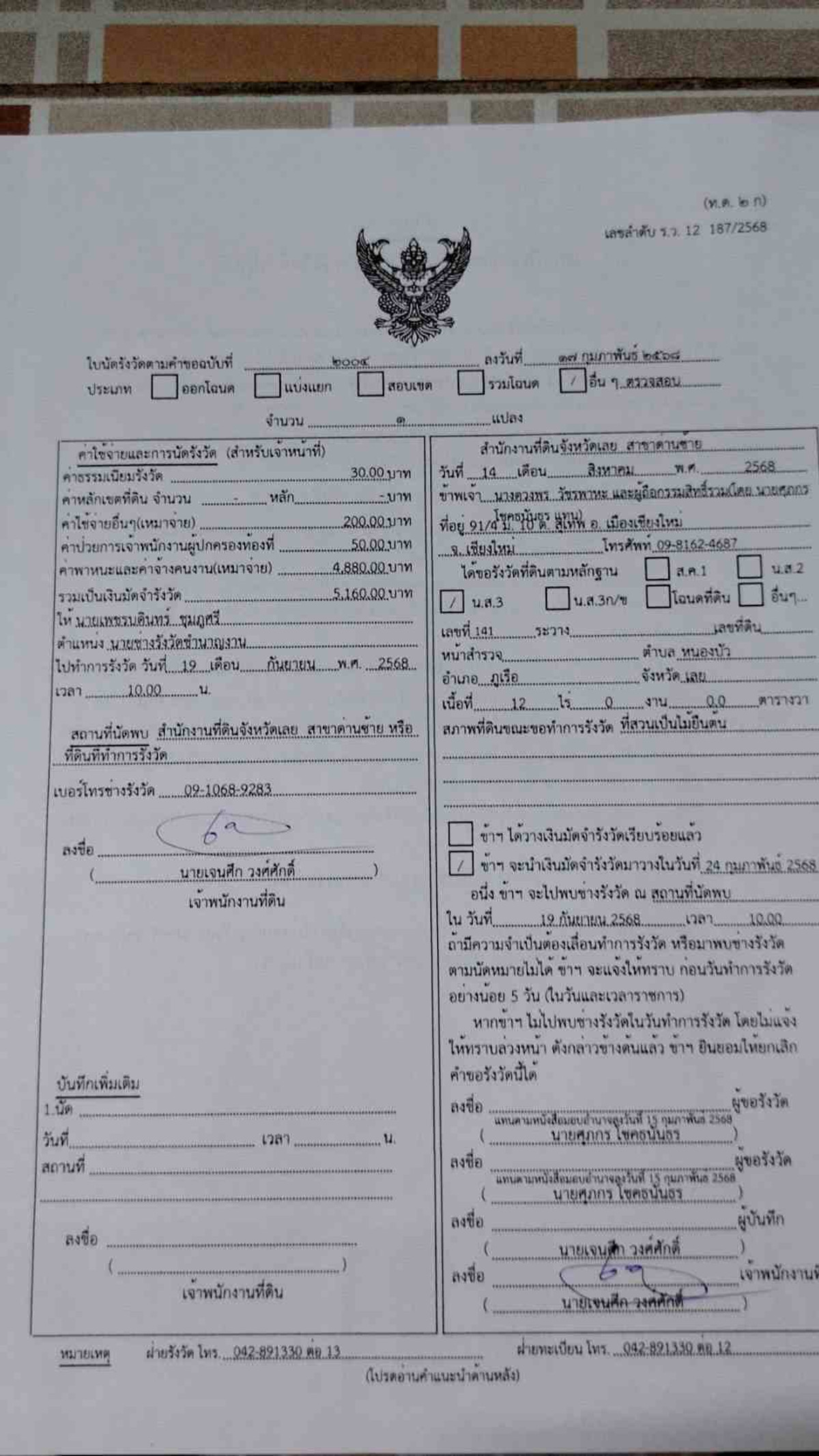 ขายที่ดินเปล่า12 ไร่ ทำเลสวย อากาศดี อำเภอภูเรือ จังหวัดเลย ที่ตั้ง : ตำบลหนองบัว อำเภอภูเรือ จังหวัดเลย 42160 พิกัด : https://maps.app.goo.gl/NG4xVD4vZL19BUzN6?g_st=il ขนาดเนื้อที่ : 12 ไร่ รายละเอียด ที่ดินเปล่า บรรยากาศดี ล้อมรอบด้วยธรรมชาติ ทำเลเงียบสงบ อากาศเย็นสบายตลอดปี จุดเด่น -วิวสวย เหมาะสำหรับผู้ที่ต้องการความเป็นส่วนตัว -การเดินทางสะดวก ใกล้แหล่งท่องเที่ยวสำคัญของภูเรือ เหมาะสำหรับพัฒนาเป็น -รีสอร์ท / ที่พักตากอากาศ -โฮมสเตย์ -บ้านพักส่วนตัว -เกษตรเชิงท่องเที่ยว สถานที่ใกล้เคียง -วัดคีรีบรรพต -ไร่ภูซำเตยสวนปูไม้ดอกไม้ประดับ -น้ำตกแก่งเกลี้ยง -โรงแรมภูเรือ แซงค์ฌัวรี รีสอร์ท แอนด์ สปา ขายราคาพิเศษ 8,000,000 บาท สนใจติดต่อ โทร : คลิกเพื่อดูเบอร์โทรติดต่อ