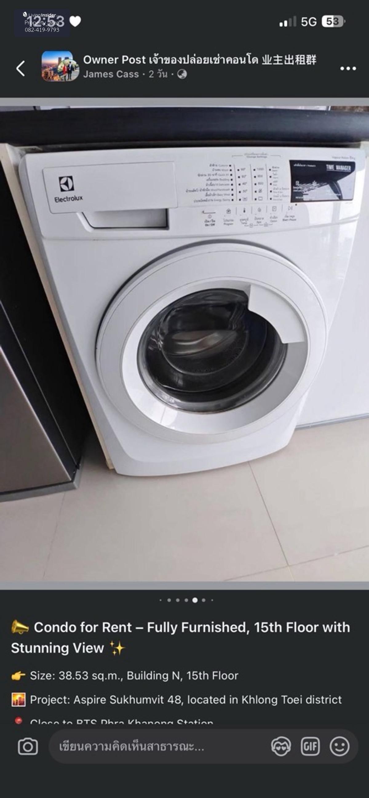 ชื่อโครงการ : ให้เช่า Aspire Sukhumvit 48 ( แอสปาย สุขขุมวิท 48 ) ตึก/อาคาร : N วิวห้อง : เมือง ชั้น : 15 ขนาดห้อง : 38 ตร.ม. จำนวนห้อง : 1 ห้องนอน 1 ห้องน้ำ เฟอร์นิเจอร์ : เตียง ที่นอน โซฟา ครัวบิ๊วอิน ตู้เก็บของ เครื่องใช้ไฟฟ้า : แอร์ เตาไฟฟ้า เครื่องดูดควัน ตู้เย็น ทีวี เครื่องซักผ้า ไมโครเวฟ ราคา : 17,500 บาท ลูกค้าสนใจหา เช่า/ซื้อ นัดชมห้อง ติดต่อสอบถาม 🖋❤️ลิ้งค์ไลน์@ https://page.line.me/024pksze Agent property area 🏢 โทร 📍 คลิกเพื่อดูเบอร์โทรติดต่อ แพรว ไอดีไลน์ : @propertyarea