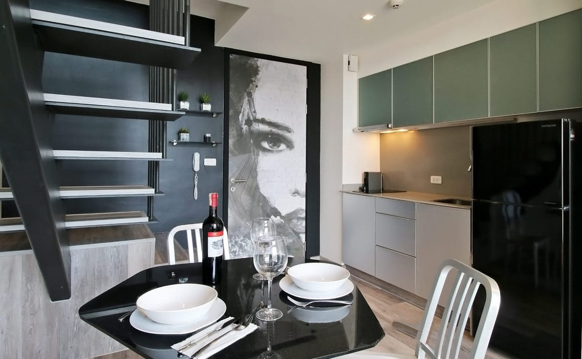 Condo for Rent – The Lofts Ekkamai Duplex | Newly Renovated Fully furnished duplex unit, ready to move in, including: Free Wi-Fi Fully equipped kitchen & kitchenware Microwave Coffee machine Refri