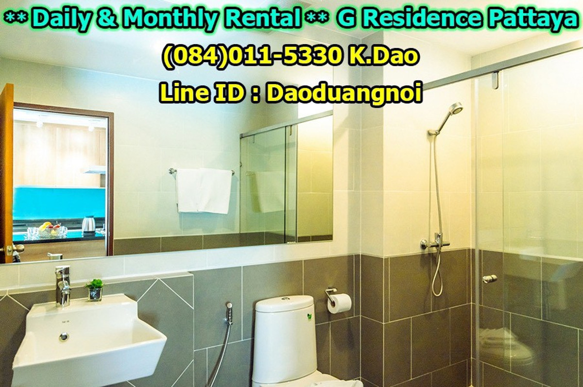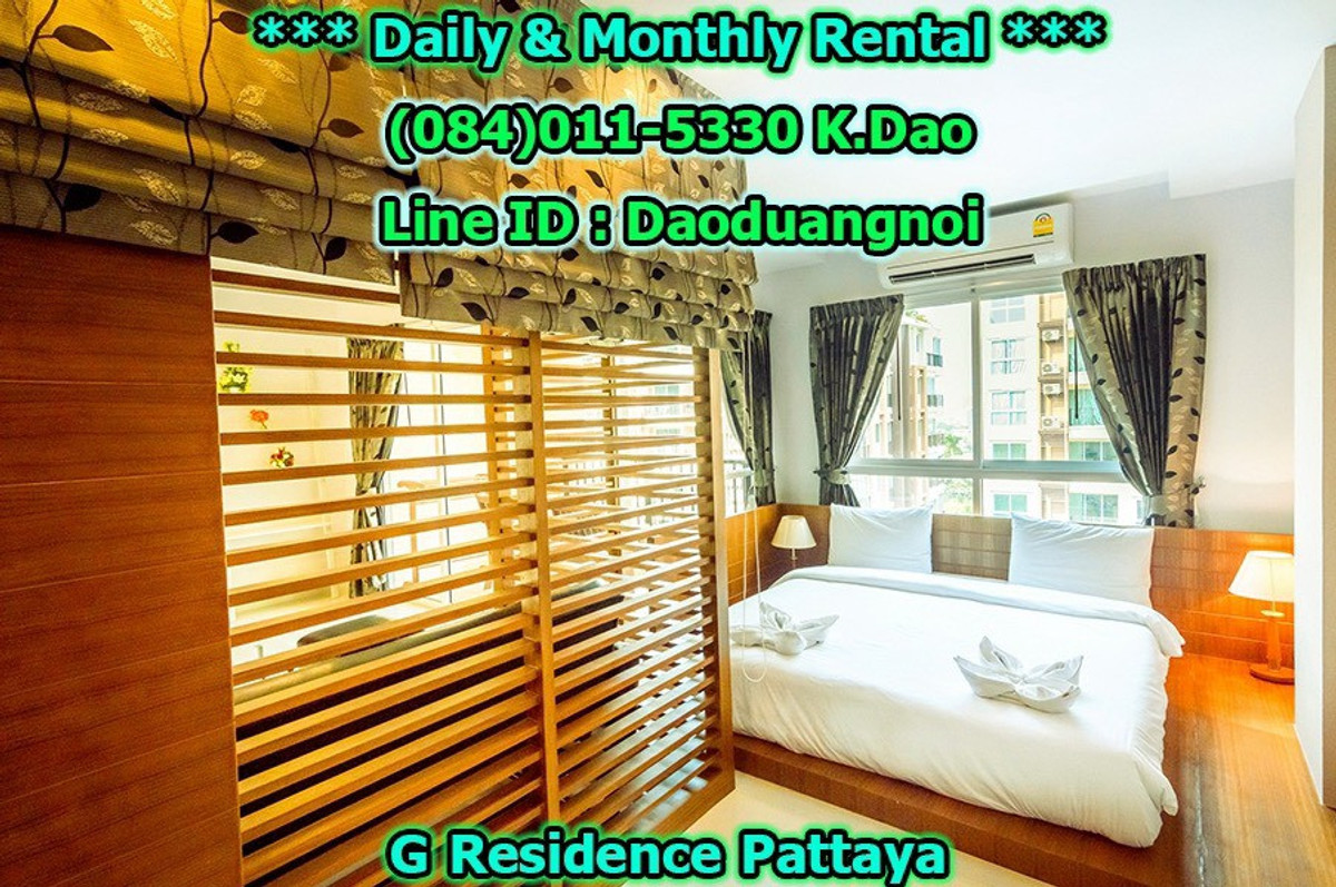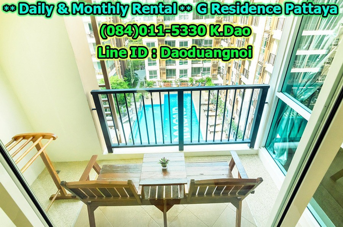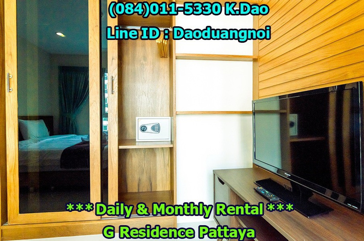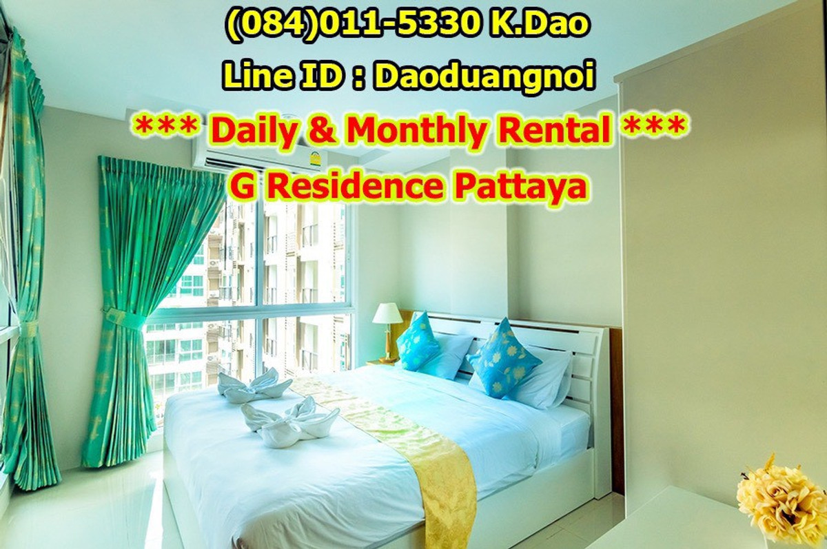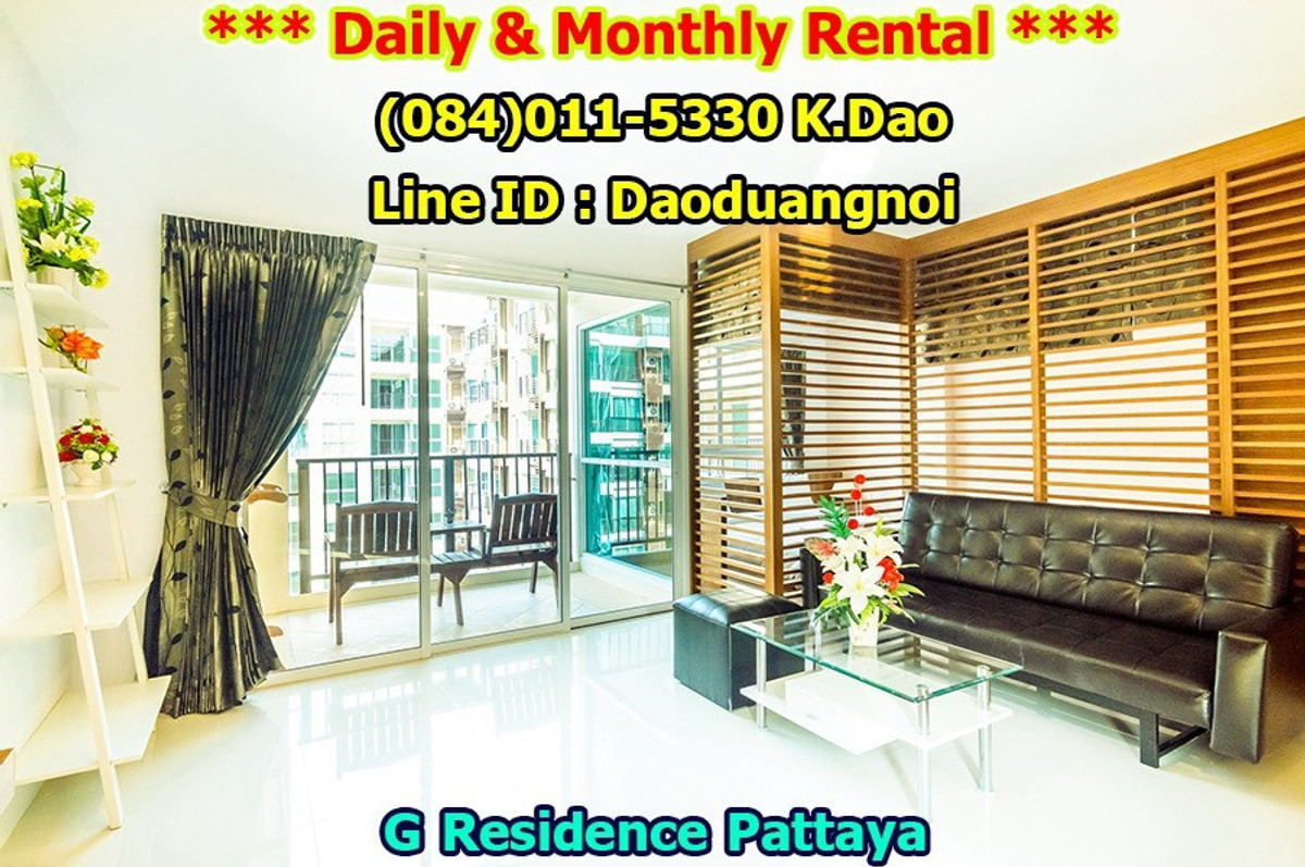 *** Daily & Monthly Rental *** G Residence Pattaya 2-Bedrooms Apartment +++ Pool view +++ Area 75 Sq.m. 2 Bedrooms 2 Bathrooms 1 European Kitchen Balcony for relaxation Living and Dining Area +++ Furniture & Electric Appliances +++ Electrical cooking hobs 2 air conditioning units 2 flat-screen TVs with cable TV Refrigerator with freezer Basic kitchen utensils: frying pan, saucepan, kettle, cutlery, plates, glasses, and coffee cups Clothes rack, Safety box, Microwave Free!!! Wifi internet Free!!! Swimming in the luxury pools. High security, 24-hour-security guard Enter the residence (Building G) with a keycard. Daily Rental Fee 2,500 Baht/Night *** Special *** For 1-year contract, +++ Rental fee is 29,000 Baht/Month +++ Monthly Rental Fee 4 - 11 Months; 32,000 Baht/Month 2 - 3 Months; 36,000 Baht/Month Location : https://goo.gl/maps/p6ismRL6LpxdKg5A8 Contact for renting with Dao. Tel. : (084)011-5330 Line ID : Daoduangnoi WhatsApp : คลิกเพื่อดูเบอร์โทรติดต่อ https://www.facebook.com/ThePastelProperty