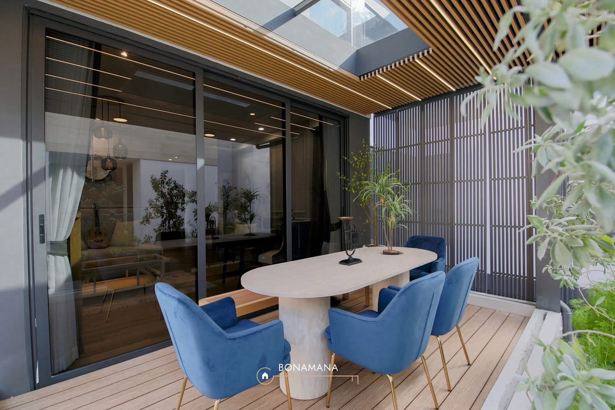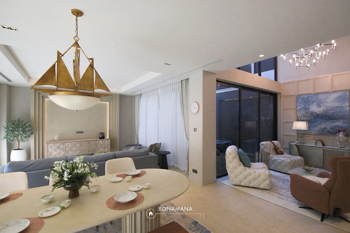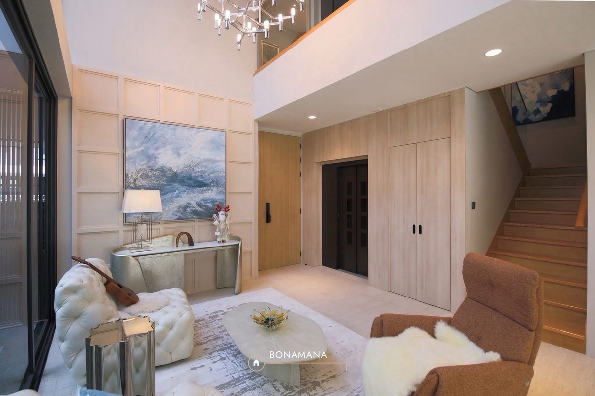 Super Luxury Pool Villa for Rent. The Urban Reserve Rama 9 Luxury Pool Villa House for Rent Fully Furnished with Imported Furniture Chanintr 3 Storeys, Land area: 80 sq.wah usable area approx. 550 sq.m. 5 Bedrooms 6 Bathrooms Separate 1 Maid’s room with maid’s bathroom Separate western kitchen Separate laundry room Private parking for 4 cars (inside the house) Private In-House Facilities - Private internal elevator - Private swimming pool - Private gym (Technogym, Matrix Fitness) - Internal courtyard with a small waterfall feature Nearby Locations Brighton College Bangkok, Wellington College International Bangkok, Stamford International University, Assumption University Shopping & Lifestyle: MaxValu, The Nine Center Rama 9, Seacon Square Srinakarin, Paradise Park Rent: 280,000 THB/ month 1 year contract Please contact Khun Tang: คลิกเพื่อดูเบอร์โทรติดต่อ Line ID: @bonamana Whatsapp: คลิกเพื่อดูเบอร์โทรติดต่อ