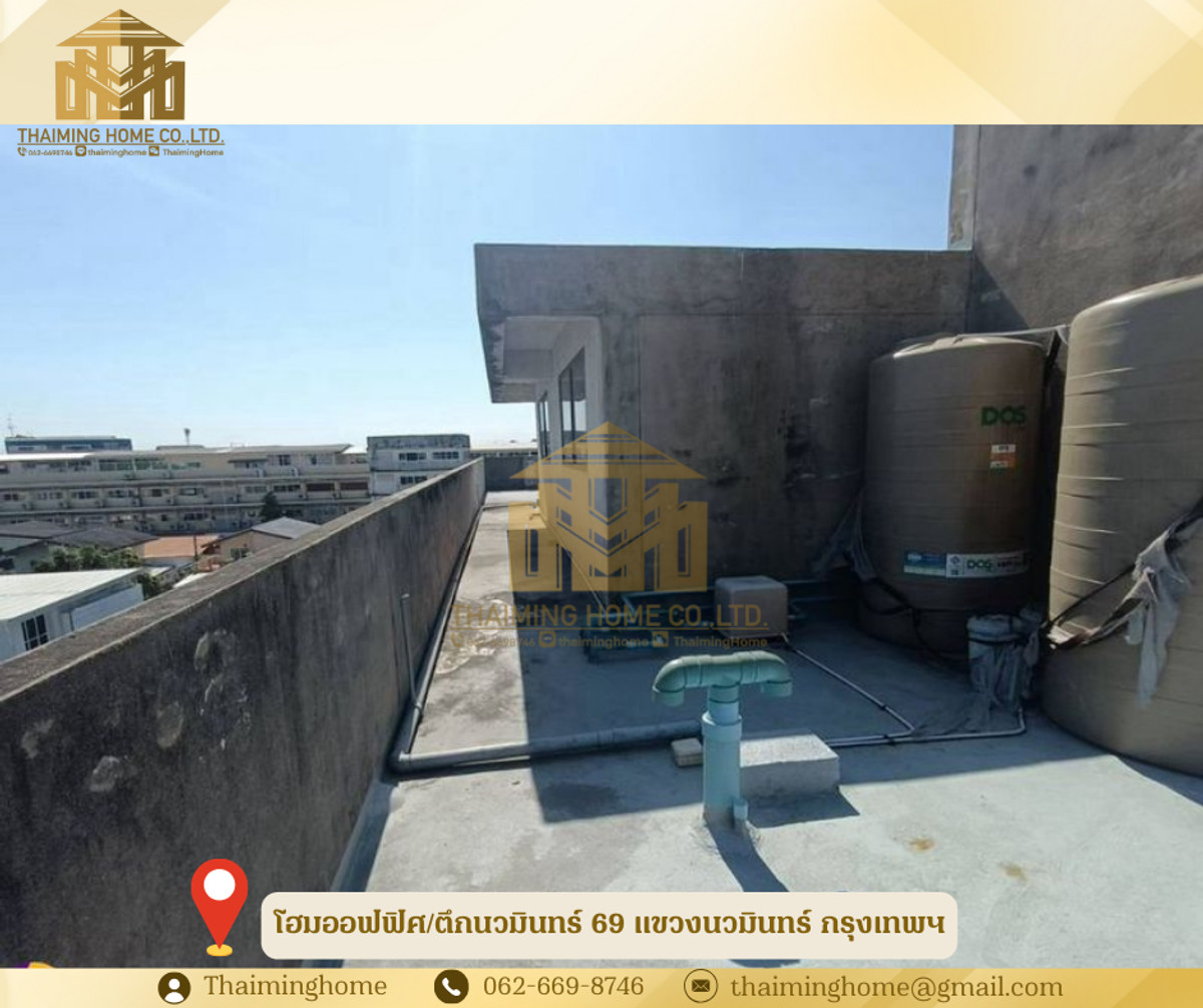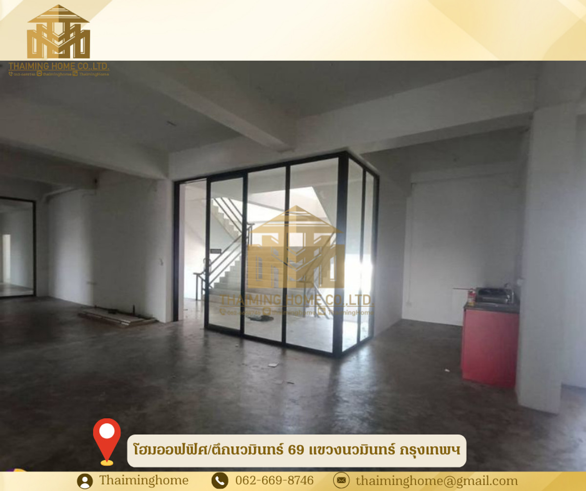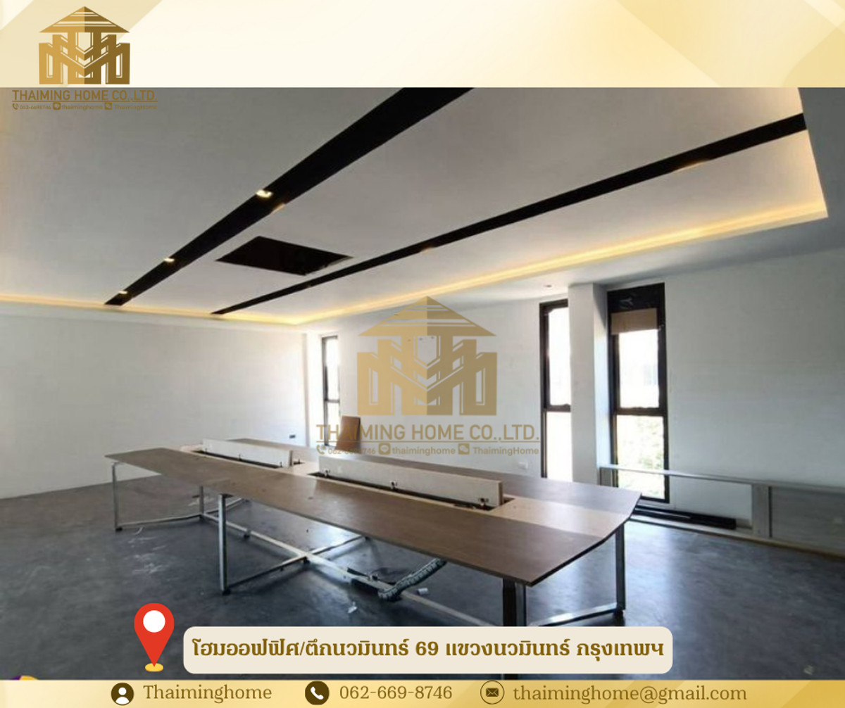 โฮมออฟฟิศ/ตึกนวมินทร์ 69 แขวงนวมินทร์ กรุงเทพ(รหัสทรัพย์TT4-090126) รายละเอียด - จำนวน 5 คูหา เนื้อที่ใช้สอยประมาณ 1,800 ตร.ม. - มีทั้งหมด 3 ชั้น และดาดฟ้า - ชั้น1 - เป็นที่จอดรถและห้องเก็ของ2ห้อง มีห้องน้ำ 1 ห้อง - ชั้น2 - ห้องทานอาหาร มีห้องน้ำ2ห้อง - ห้องประชุม - ห้องทำงาน - ห้องRoomทั้งหมด 4 ห้อง - ชั้น3 - เป็นห้องพักทั้งหมด 12 ห้อง - มีห้องน้ำในตัวทุกห้อง - ชั้นดาดฟ้า - มีปั้มน้ำ+แทงค์น้ำ พร้อมใช้งาน - ค่าน้ำ+ไฟ ชำระกับหลวง สถานที่ใกล้เคียง - ตลาดบุญนิยมอโศก - สนามกีฬาคลองจั่น - ฟู๊ดแลนด์นวมินทร์ - ตลาดปัฐวิกรณ์ - โลตัสสุขาภิบาล - โรงพยาบาลเกษมราษฎร์ รามคำแหง เงื่อนไขในการเช่า - สัญญา 1-3 ปี - เงินประกัน 3เดือน - ค่าเช่าล่วงหน้า 1 เดือน - ค่าเช่า 80,000บาท/เดือน ----------------------------- บริษัท ไทยหมิง โฮม จำกัด Thaiming Home Co.,Ltd. 泰明房园 房产公司 ----------------------- Contact ติดต่อ : คลิกเพื่อดูเบอร์โทรติดต่อ Contact : คลิกเพื่อดูเบอร์โทรติดต่อ คุณหมิง(中文) Line ID: thaiminghome Line ID: @thaiminghome https://lin.ee/PkkHwYv Wechat : ThaimingHome E-mail : คลิกเพื่อดูอีเมล -----------------------