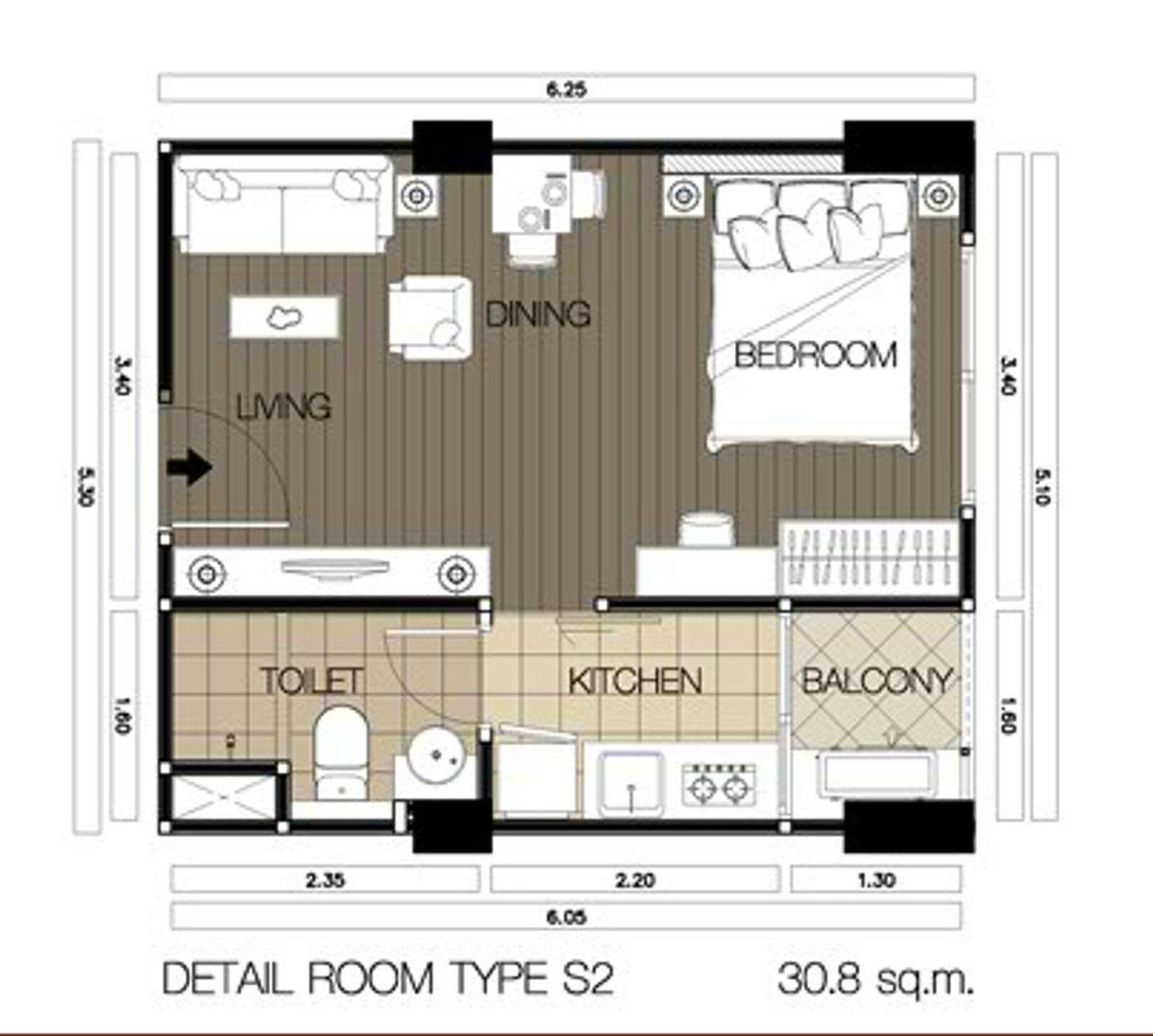 พื้นที่ใช้สอย 30.84 ตร.ม.