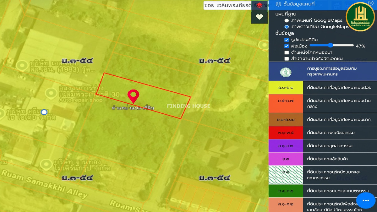 ขายด่วน ที่ดิน 200 ตร.ว. ทำเลศักยภาพ ซอยเฉลิมพระเกียรติ ร.9 ราคาเพียง 6.4 ล้าน! ผังสีเหลือง ถนนกว้าง 10 เมตร ข้อมูลสรุปที่ดินแปลงนี้ - เนื้อที่: 200 ตารางวา - ผังเมือง: สีเหลือง ย.3 (ที่ดินประเภทที่อยู่อาศัยหนาแน่นน้อย) - ทิศหน้าทรัพย์: ทิศตะวันออก (รับทรัพย์ รับแสงเช้า) พิกัด: ถนนเฉลิมพระเกียรติ ร.9 แขวงหนองบอน เขตประเวศ กรุงเทพฯ แผนที่ Google Maps: คลิกเพื่อนำทาง (13.6870557, 100.6822481) ความโดดเด่นของทำเล - ถนนกว้างพิเศษ: ถนนซอยสาธารณะกว้างถึง 10 เมตร รถใหญ่สวนกันสบาย เข้า-ออกสะดวกมาก - ใกล้ถนนใหญ่: เพียง 75 เมตร จากปากซอยถึงหน้าที่ดิน และเพียง 1.5 กม. ถึงถนนเฉลิมพระเกียรติ ร.9 - เข้า-ออกได้หลายทาง: เชื่อมต่อทั้งถนนเฉลิมพระเกียรติ ร.9, ศรีนครินทร์ และพัฒนาการตัดใหม่ สถานที่สำคัญใกล้เคียง - ธรรมชาติและการพักผ่อน: สวนหลวง ร.9, ศูนย์กีฬาทางน้ำบึงหนองบอน - ห้างสรรพสินค้า: ซีคอนสแควร์ ศรีนครินทร์, พาราไดซ์ พาร์ค, เซ็นทรัล บางนา - การเดินทาง: รถไฟฟ้าสายสีเหลือง (สถานีศรีอุดม / สถานีสวนหลวง ร.9), สนามบินสุวรรณภูมิ - สถานพยาบาล: รพ.สินแพทย์ ศรีนครินทร์, รพ.ไทยนครินทร์ - ราคาขาย: 6,400,000 บาท (ตกเพียง 32,000 บาท/ตร.ว. ราคาแข่งขันได้มากในย่านนี้ - ค่าใช้จ่ายวันโอน: คนละครึ่ง (50/50) สนใจติดต่อ/นัดชมที่ดิน Findinghouse โทร: คลิกเพื่อดูเบอร์โทรติดต่อ คลิกเพื่อดูเบอร์โทรติดต่อ Line: @findinghouse รายละเอียดเพิ่มเติม: www.finding-house.com