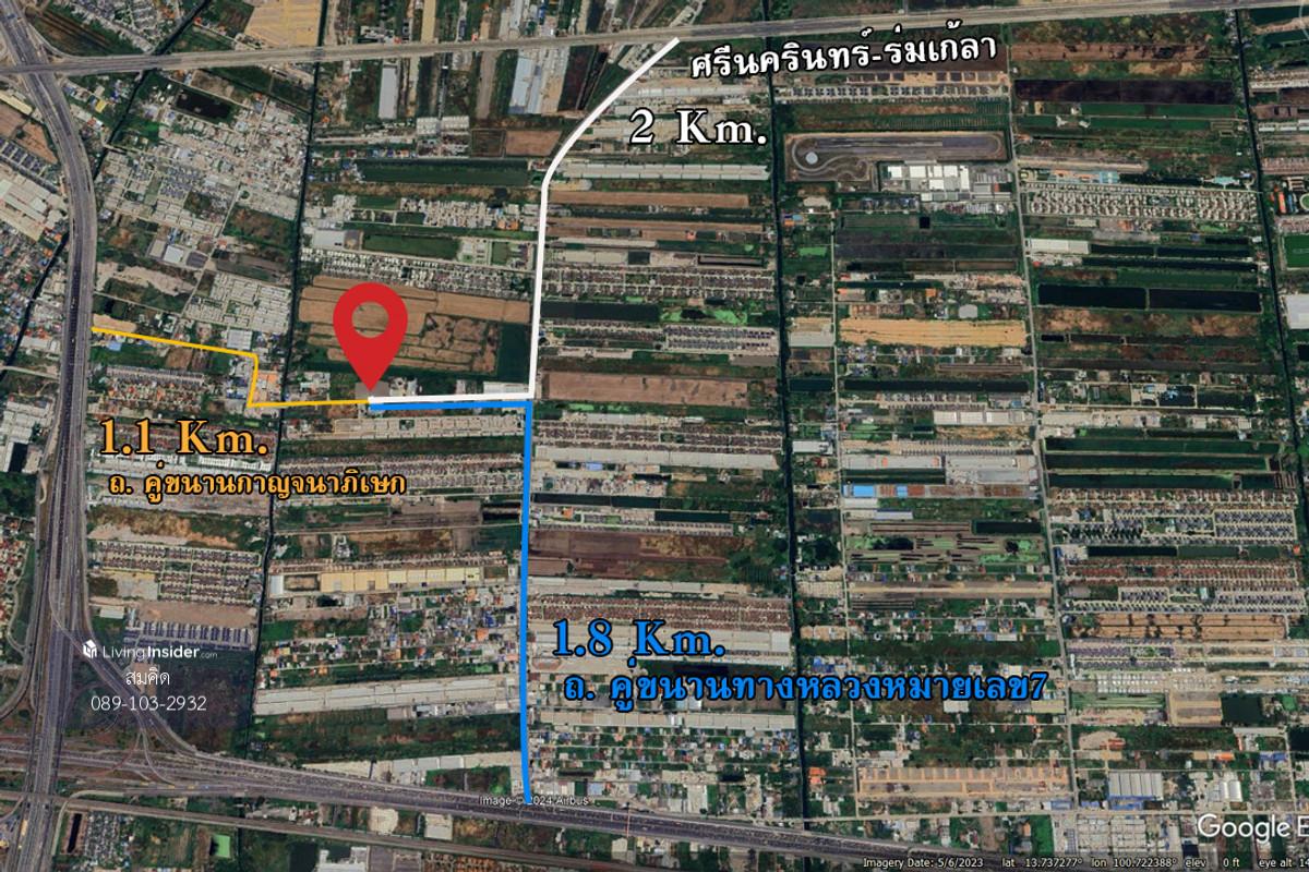ขาย ที่ดินเปล่า 4 ไร่ 2 แปลง แยกขายได้ ทุกแปลงถมแล้ว หน้ากว้างและติดถนนทุกแปลง อยู่บนทำเลศักยภาพ ที่กำลังพัฒนาต่อเนื่อง ในเขตลาดกระบัง ใกล้นิคมอุตสาหกรรม ใกล้สนามบิน การเดินทางสัญจรสะดวกสุด เข้าออกได้สามเส้นทาง และยังใกล้กับสองทางด่วนพิเศษ ไม่ว่าจะขึ้นเหนือ ลงใต้หรือไปทางทิศตะวันออก-ตกของไทย ตรงนี้ดีสุด เหมาะที่จะทำโครงการที่พักอาศัย โรงเรียน สำนักงาน โรงงาน โกดังสินค้า รายละเอียดตัวที่ดิน แปลงที่หนึ่ง : 2 ไร่ หน้ากว้าง 56 เมตร์ ลึก 55 เมตร หน้าแปลง หันไปทางทิศใต้ แปลงที่สอง : 2 ไร่ 62 เมตร ลึก 55 เมตร หน้าแปลง หันไปทางทิศใต้ ผังสีเหลือง ย.2 ห่างจากสนามบินสุรวรรณภูมิเพียง 12 กม. ห่างถนนคู่ขนานทางหลวงหมายเลข9 กาญจนาภิเษก 1.1 กม. ห่างถนนคู่ขนานทางหลวงหมายเลข7 กรุงเทพ-ชลบุรี กาญจนาภิเษก 1.8 กม. ห่างถนนศรีนครินทร์-ร่มเกล้า 2 กม. โครงการที่อยู่อาศัยใกล้เคียง สัมมากร อเวนิว สุวรรณภูมิ ไลฟ์ บางกอก บูเลอวาร์ด วงแหวน-พระราม 9 แกรนด์บริทาเนีย พระราม 9-กรุงเทพกรีฑา เซนโตร พระราม 9-มอเตอร์เวย์ เดอะแพลนท์ พระราม 9-วงแหวนฯ มัณฑนา 2 พระราม 9 วงแหวน ดิ อิเธอร์นิตี้ เวอร์ดัวร์ พระราม 9-วงแหวน เนอวานา ไอคอน วงแหวน-พระราม 9 สถานที่สำคัญใกล้เคียง โรบินสัน ไลฟ์สไตล์ ลาดกระบัง เดอะพาซิโอมอลล์ ลาดกระบัง โรงพยาบาลสิรินธร สำนักงานที่ดินกรุงเทพมหานคร สาขาประเวศ ถนนสำคัญใกล้เคียง มอเตอร์เวย์ กรุงเทพ ชลบุรีสายใหม่ ทางหลวงหมายเลข9 กาญจนาภิเษก ถนนร่มเกล้า ถนนลาดกระบัง ถนนศรีนครินทร์ ถนนพระราม ที่ตั้ง พัฒนาชนบท 3 แยก15 แขวงคลองสองต้นนุ่น เขตลาดกระบัง กรุงเทพมหานคร 10520 Plus code : PPV6+3J9 กรุงเทพมหานคร พิกัด 13°44'34.4"N 100°42'41.8"E