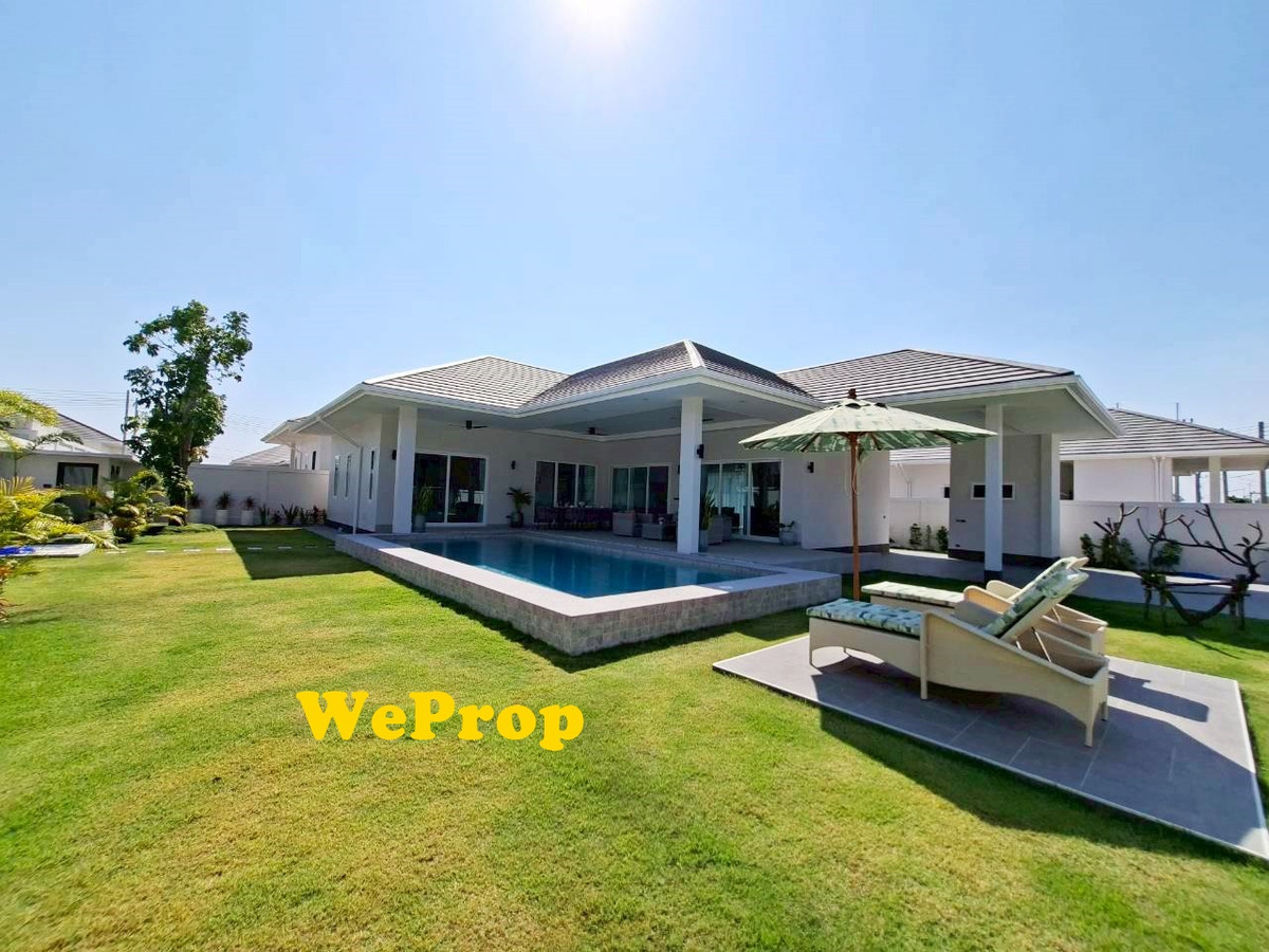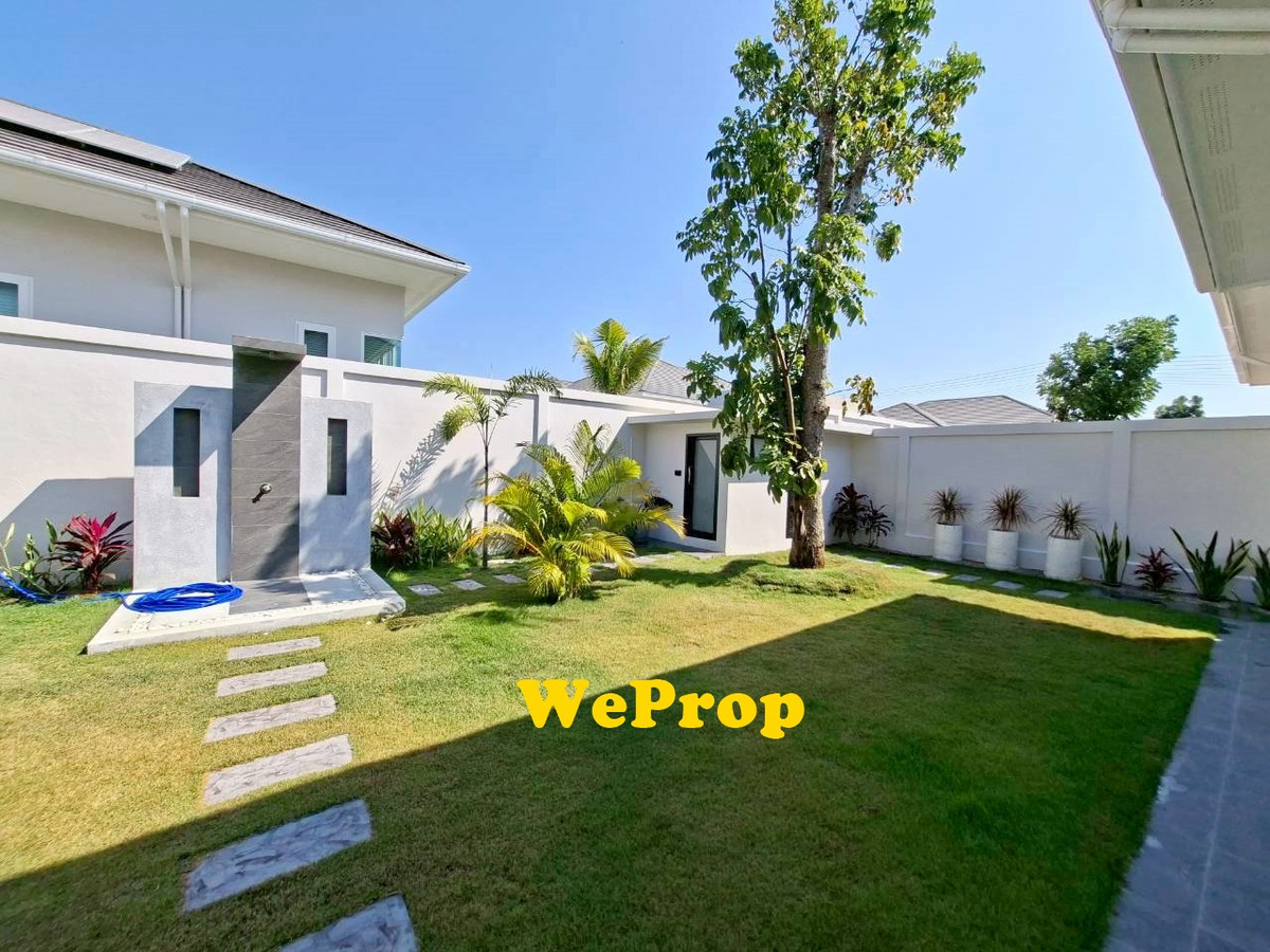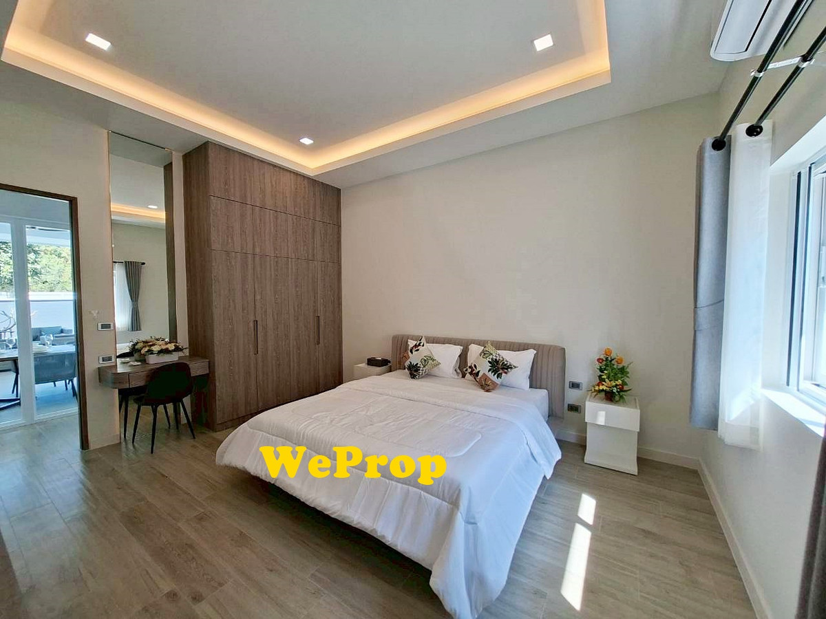ขายบ้านเดี่ยวหัวหิน 3 ห้องนอน 3 ห้องน้ำ พื้นที่ 540 ตารางเมตร พื้นที่ใช้สอย 250.30 ตารางเมตร เริ่มต้น 8,973,000 บาท ไม่รวมเฟอร์นิเจอร์ เริ่มต้น 9,423,000 บาท รวมเฟอร์นิเจอร์ ราคาขายรวมครัว, บิวท์อินตู้เสื้อผ้า, แอร์, ถังเก็บน้ำใต้ดิน 4,000 ลิตร, ปั๊มน้ำ, สระว่ายน้ำ และสวน ที่จอดรถ 2 คัน สระว่ายน้ำ 4x9 เมตร ทำเล - 15 นาทีถึงชายหาดและใจกลางหัวหิน, 15 นาทีถึงสนามกอล์ฟแบล็คเมาเท่น, โรงเรียนานาชาติ และสวนน้ำแบล็คเมาเท่น โครงการมีทั้งหมด 62 หลัง ค่าส่วนกลางตารางเมตรละ 2.5 บาทของขนาดที่ดิน ต่อเดือน สิ่งอำนวยความสะดวก : รปภ, ไฟและถนนส่วนกลาง, เก็บขยะ สนใจบ้านติดต่อ: ปลา WeProp โทร/ทักแชท คลิกเพื่อดูเบอร์โทรติดต่อ & คลิกเพื่อดูเบอร์โทรติดต่อ อีเมล์ คลิกเพื่อดูอีเมล