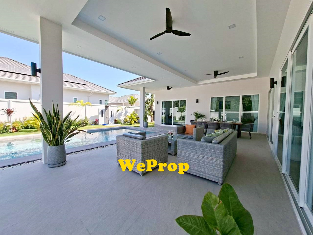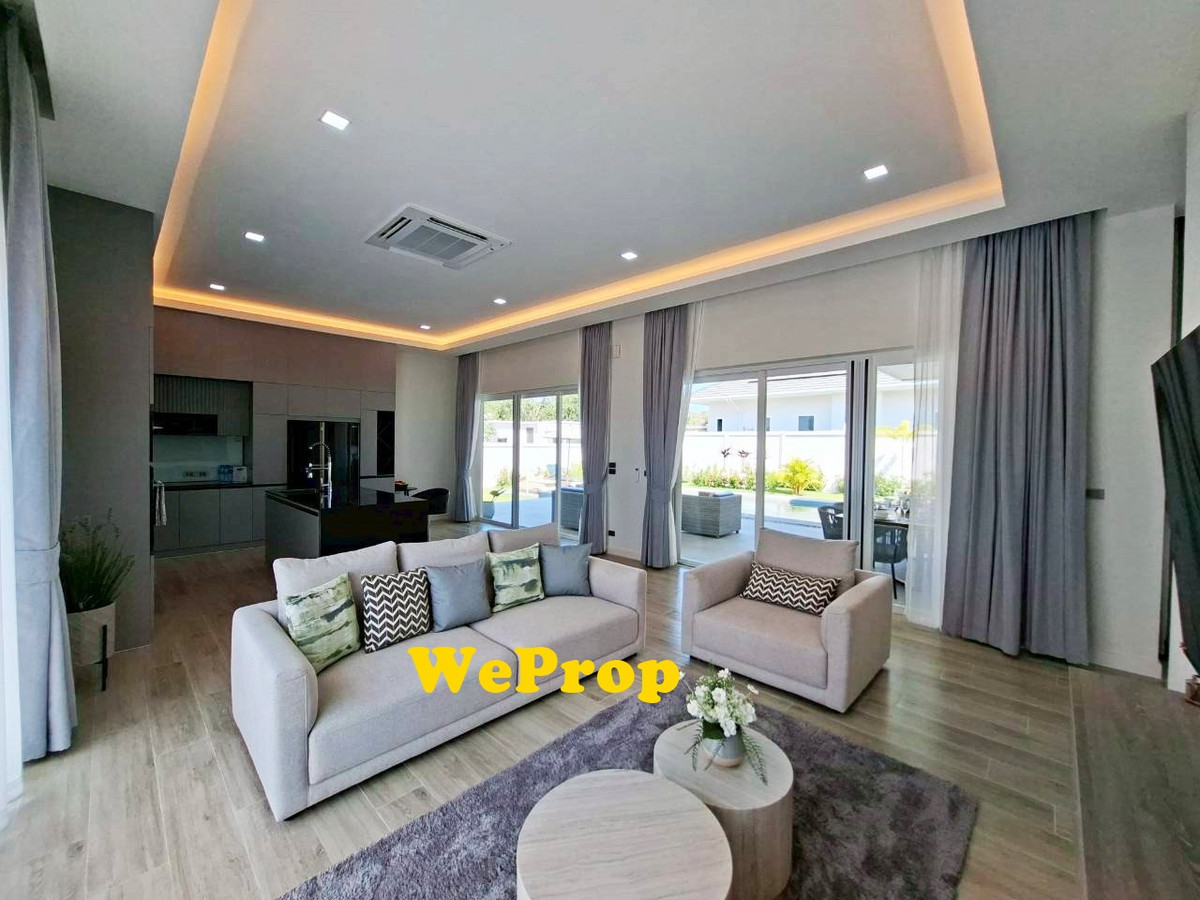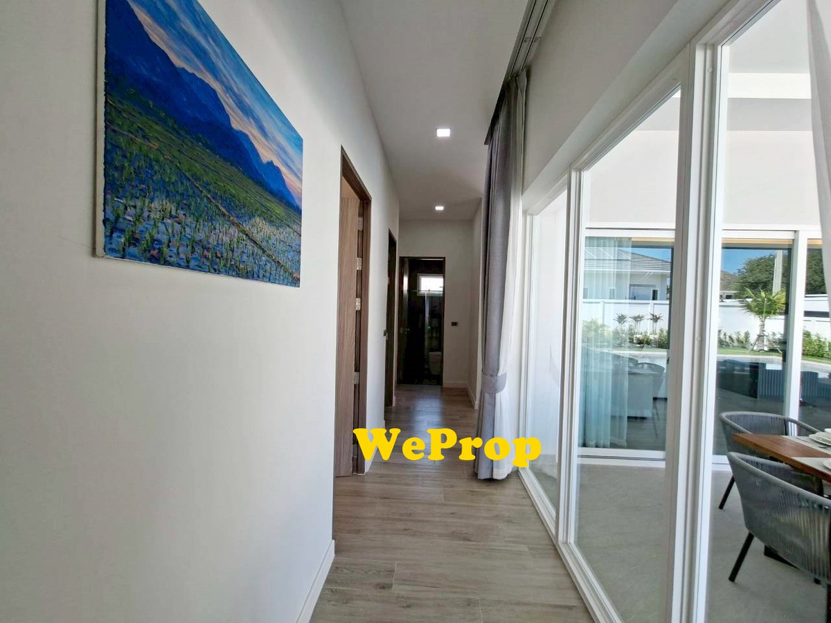 ขายบ้านเดี่ยวหัวหิน 3 ห้องนอน 3 ห้องน้ำ พื้นที่ 540 ตารางเมตร พื้นที่ใช้สอย 250.30 ตารางเมตร เริ่มต้น 8,973,000 บาท ไม่รวมเฟอร์นิเจอร์ เริ่มต้น 9,423,000 บาท รวมเฟอร์นิเจอร์ ราคาขายรวมครัว, บิวท์อินตู้เสื้อผ้า, แอร์, ถังเก็บน้ำใต้ดิน 4,000 ลิตร, ปั๊มน้ำ, สระว่ายน้ำ และสวน ที่จอดรถ 2 คัน สระว่ายน้ำ 4x9 เมตร ทำเล - 15 นาทีถึงชายหาดและใจกลางหัวหิน, 15 นาทีถึงสนามกอล์ฟแบล็คเมาเท่น, โรงเรียนานาชาติ และสวนน้ำแบล็คเมาเท่น โครงการมีทั้งหมด 62 หลัง ค่าส่วนกลางตารางเมตรละ 2.5 บาทของขนาดที่ดิน ต่อเดือน สิ่งอำนวยความสะดวก : รปภ, ไฟและถนนส่วนกลาง, เก็บขยะ สนใจบ้านติดต่อ: ปลา WeProp โทร/ทักแชท คลิกเพื่อดูเบอร์โทรติดต่อ & คลิกเพื่อดูเบอร์โทรติดต่อ อีเมล์ คลิกเพื่อดูอีเมล