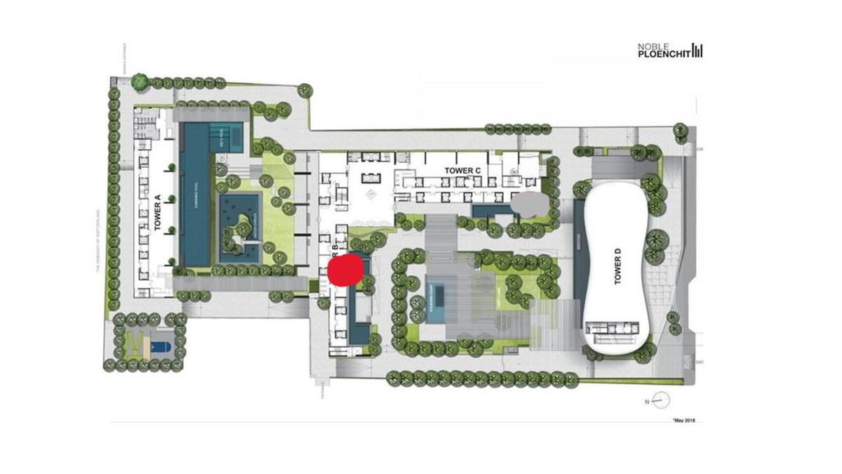 ขายขาดทุน Noble Ploenchit 51.78 ตร.ม. ชั้น 18 ระเบียงทิศใต้ วิวสวนหน้าโครงการ