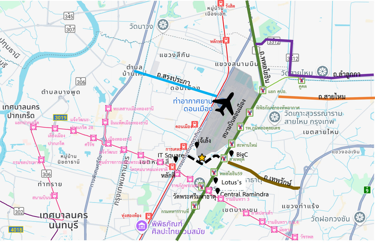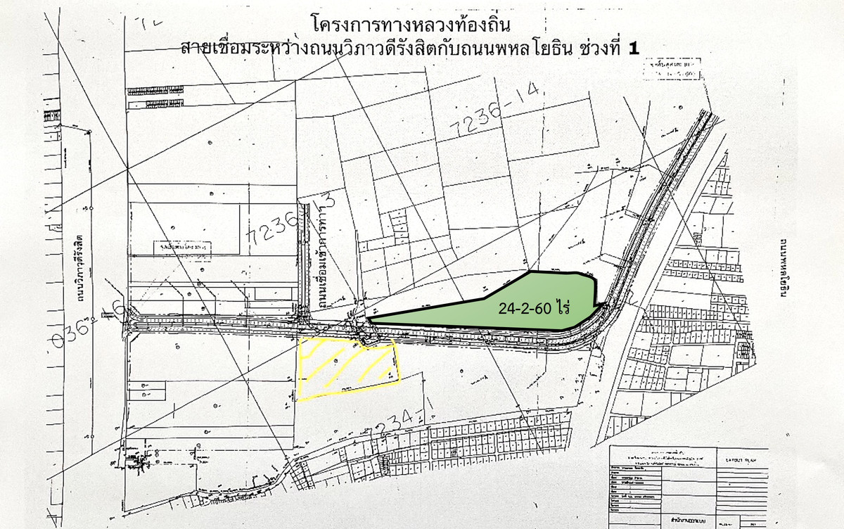 ขาย ที่ดิน 24-2-60 ไร่ ถนนตัดใหม่วิภาวดี-พหลโยธิน (สนามบินดอนเมือง) ขายต่ำกว่าราคาตลาด!!! เนื้อที่ 24 ไร่ 2 งาน 60 ตารางวา หรือ 9,860 ตารางวา หน้ากว้างติดถนนทั้งหมด 547 เมตร หน้ากว้างติดถนน เฉพาะทางตรง 430 เมตร ถนน เทพรักษ์ (เชื่อมวิภาวดี-พหลโยธิน-เทพรักษ์) แขวงสนามบิน เขตดอนเมือง กรุงเทพมหานคร 10210 พิกัด 13.89004110,100.59460252 ผังเมือง สีเหลือง ย.4-7 FAR 3:1 OSR 10% - ที่อยู่อาศัยรวม ไม่เกิน 10,000 ตร.ม. - ประกอบพาณิชยกรรม ไม่เกิน 2,000 ตร.ม. - สำนักงาน ไม่เกิน 1,000 ตร.ม. - จำกัดความสูง ประมาณ 12.5-15.5 เมตร , 23-25 เมตร ขาย ตารางวาละ 55,000 บาท (22,000,000 บาท ต่อ ไร่) รวมทั้งหมด 542,300,000 บาท สนใจติดต่อ บิ๋ม คลิกเพื่อดูเบอร์โทรติดต่อ ขายที่ดินสวย สภาพแวดล้อมดี ทำเลเข้าออกสะดวก เข้าออกได้หลายทาง ราคาต่อรองได้ ต้องการพิกัดแผนที่ หรือ ข้อมูลเพิ่มเติม แชท/โทร มาคุยได้
