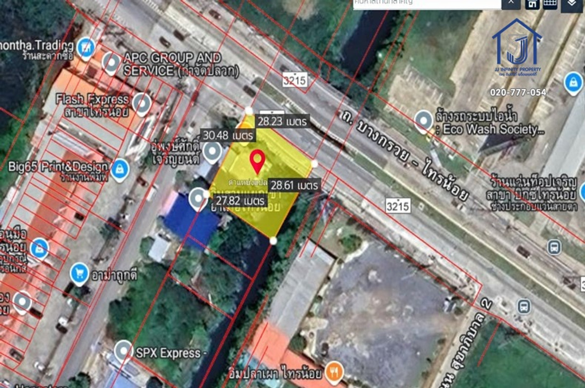 ติดต่อ :คุณปัก คลิกเพื่อดูเบอร์โทรติดต่อ/ คลิกเพื่อดูเบอร์โทรติดต่อ LINE OA : @jjinfinity (มี @ ข้างหน้า) เว็บไซต์ : www.jjinfinityproperty.com ที่ตั้ง : ถนนเทศบาล 2 ถนนบางกรวย-ไทรน้อย ตำบลคลองขวาง อำเภอไทรน้อย นนทบุรี 11150 พื้นที่ : 196 ตารางวา กว้าง-ยาว : กว้าง 30 เมตร ลึก 28 เมตร รีวิว : ที่ดินถมแล้วพร้อมใช้งาน ขนาด 196 ตารางวา ทำเลศักยภาพ ติดถนนบางกรวย–ไทรน้อย เยื้อง Big C Supercenter มองเห็นง่าย เข้าถึงสะดวก เหมาะสำหรับทำอาคารพาณิชย์ โชว์รูม คลินิก ปั๊มน้ำมันขนาดเล็ก ร้านอาหาร หรือพัฒนาเชิงพาณิชย์–ที่อยู่อาศัย ทำเลมีทราฟฟิกสูง ใกล้ชุมชนและแหล่งจับจ่าย ดีมานด์ใช้งานต่อเนื่อง สถานที่ใกล้เคียง :Big C Supercenter บางกรวย–ไทรน้อย,Lotus’s บางกรวย,Makro บางบัวทอง, Central WestGate,โรงเรียนเด่นหล้า พระราม 5,โรงเรียนบดินทรเดชา (นนทบุรี), โรงพยาบาลเกษมราษฎร์ รัตนาธิเบศร์,โรงพยาบาลยันฮี,ที่ว่าการอำเภอบางกรวย,สถานีตำรวจบางกรวย, การเดินทาง ถนนบางกรวย–ไทรน้อย,ถนนกาญจนาภิเษก,ถนนนครอินทร์,ถนนราชพฤกษ์. #JJInfinityProperty