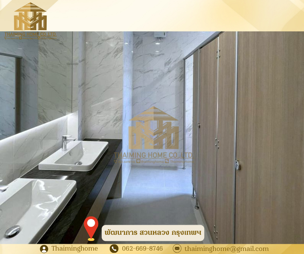 เช่าอาคารสำนักงานสร้างใหม่กลางพัฒนาการ เขตสวนหลวง กรุงเทพ (รหัสทรัพย์TO4-040126) รายละเอียด เช่าทั้งอาคารพื้นที่รวมประมาณ 872.68 ตร.ม. ชั้น 1: 203.32 ตร.ม. (มีห้องไฟฟ้า + ห้องเก็บของ) ชั้น 2–4: ชั้นละ 223.12 ตร.ม. อาคารสูง 4 ชั้น พร้อมลิฟต์โดยสาร Mitsubishi ระบบปรับอากาศ VRV (Carrier) หน่วย CDU ติดตั้งบนดาดฟ้า แยกสัดส่วน Solar Roof ขนาด 20 KVA ช่วยลดภาระค่าไฟฟ้า ที่จอดรถ 12–13 คัน ฝ้าเพดานแบบเปิดเดินสายไฟและจุดติดตั้งไว้แล้ว ผู้เช่าสามารถออกแบบติดตั้งไฟและกั้นห้องได้ตามต้องการ พื้นชั้น 2–4 เป็นแบบ Post-Tension ไม่สามารถเจาะพื้นได้ (พื้นปูกระเบื้อง) หากเดินระบบไฟฟ้าเพิ่มจะต้องใช้วิธีเดินท่อ สถานที่ใกล้เคียง เดอะไนน์ เซ็นเตอร์ พระราม 9 โรงพยาบาลแพทย์ปัญญา เดอะมอลล์รามคำแหง BTS หัวหมาก โรงพยาบาล สมิติเวศ ศรีนครินทร์ เงื่อนไขการเช่า - สัญญาเช่าขั้นต่ำ 3 ปี - เงินประกัน 3 เดือน - ค่าเช่าล่วงหน้า 1 เดือน - ค่าเช่าชั้น 1-4: 100,000 บาทต่อเดือน/ต่อชั้น - เช่าทั้งอาคาร400,000 บาทต่อเดือน --------------------------------- บริษัท ไทยหมิง โฮม จำกัด Thaiming Home Co.,Ltd. 泰明房园 房产公司 ----------------------- Contact ติดต่อ : คลิกเพื่อดูเบอร์โทรติดต่อ Contact : คลิกเพื่อดูเบอร์โทรติดต่อ คุณหมิง(中文) Line ID: thaiminghome Line ID: @thaiminghome https://lin.ee/PkkHwYv Wechat : ThaimingHome E-mail : คลิกเพื่อดูอีเมล -----------------------