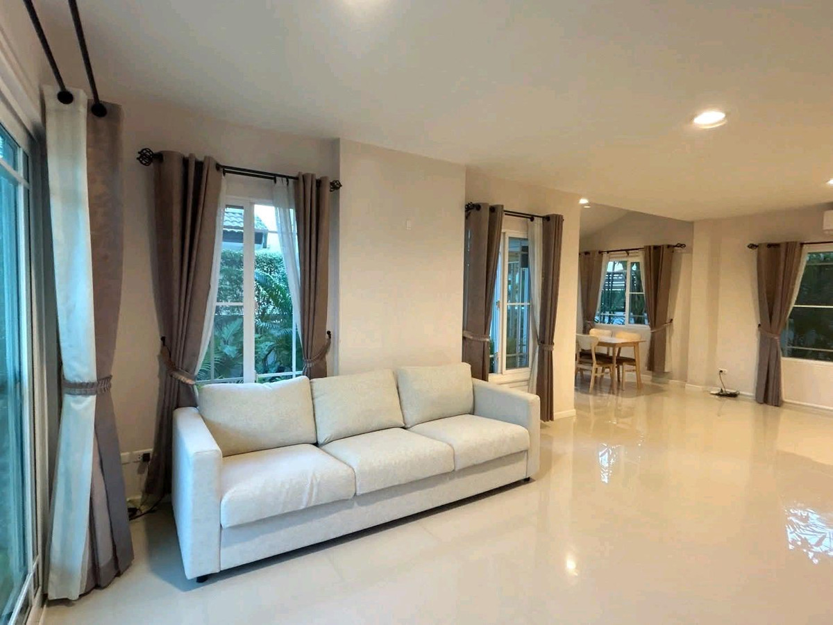 Modern, detached 2-story house for rent in the peaceful Manthana Rama 9 – Srinakarin moobaan.