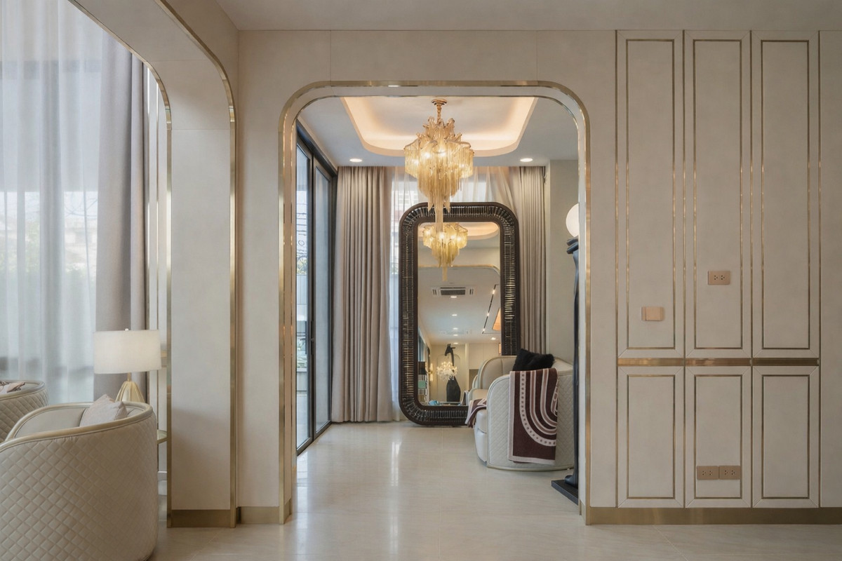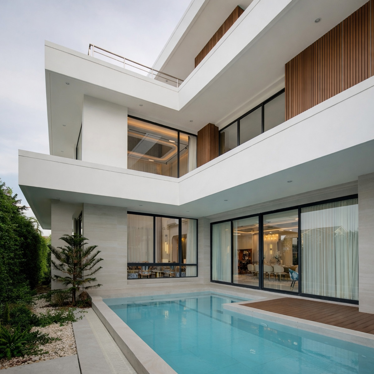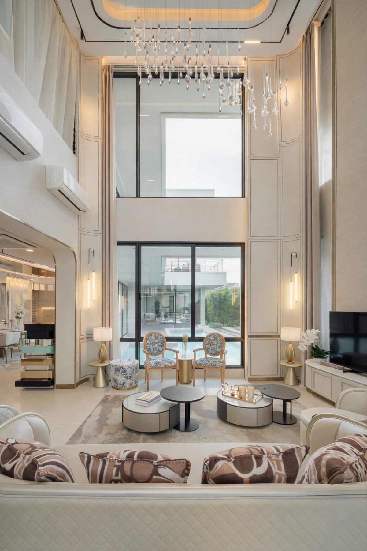 Single Residence Ekkamai-Pridi Banomyong In prime location. 10 Mins to Thonglor.  3 stories house Usual area : 920 Sqm Fully- furnished 4 bedrooms bathrooms 6 bathrooms 2 maid rooms 5 indoor - parking