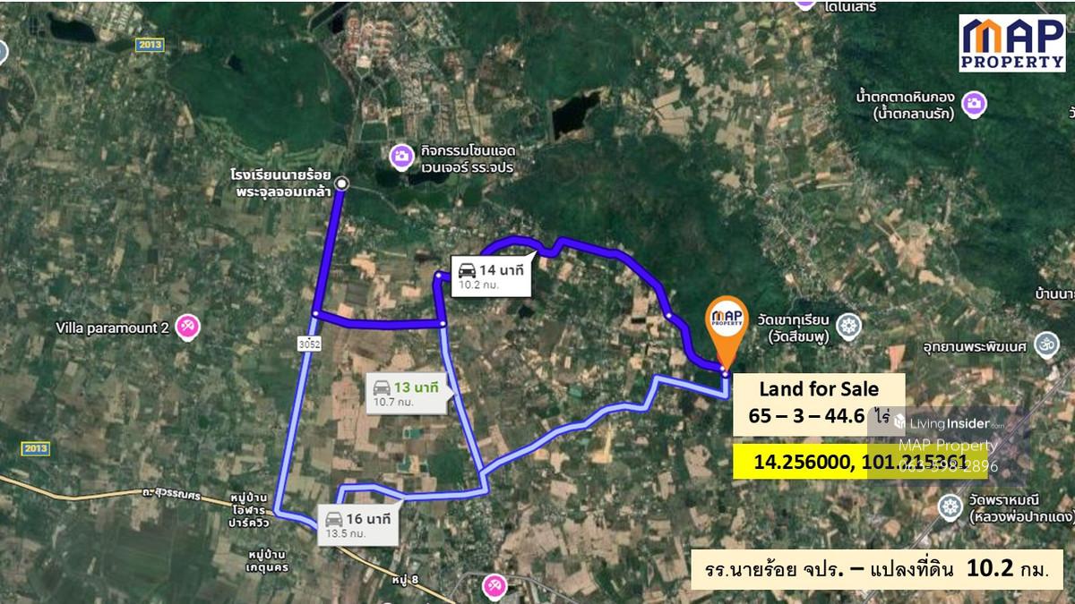 ที่ดินในหุบเขา เนื้อที่ 65-3-44.6 ไร่ ติดถนนเขาทุเรียน-เขาน้อย ต.เขาพระอ.เมืองจ.นครนายก ล้อมรั้วด้านติดถนน ที่ดินรูปหลายเหลี่ยม ขนาด 300 X 400 เมตร ถมแล้วบางส่วน ขุดบ่อสำรองน้ำใช้ในการเกษตร น้ำประปา+ไฟฟ้าถึงหน้าแปลง เดินทางสะดวกจาก บขส.นครนายกเพียง 5.6 กม. ใกล้โรงเรียนนายร้อย จปร.10.2 กม. เหมาะทำรีสอร์ท บ้านพักเชิงเขา จัดสรรเป็นสวนเกษตร หรือโครงการหมู่บ้านจัดสรรแนวธรรมชาติ ติดต่อ.ชาญศักดิ์ 088.779.5655