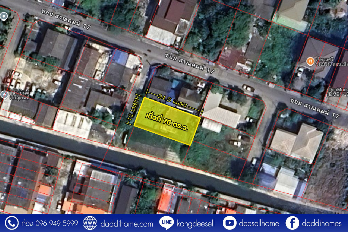 ขายที่ดินสรณคมน์ 17 (ทำเลเชื่อมต่อนาวงประชาพัฒนา) ที่ดินแปลงสวยขนาด 76 ตารางวา ตั้งอยู่ในแหล่งชุมชนคุณภาพย่านดอนเมือง-สรงประภา เป็นพื้นที่ผังเมืองสีเหลืองที่เหมาะสำหรับการสร้างที่อยู่อาศัยที่เงียบสงบ เดินทางเข้าออกได้สะดวกหลายเส้นทาง เชื่อมต่อแหล่งอำนวยความสะดวกครบครัน ติดต่อ กรกวี เสรีพุกกะณะ (ก้อง) โทร : คลิกเพื่อดูเบอร์โทรติดต่อ Line ID : kongdeesell, @deesell ประเภท : ที่ดิน ที่ตั้ง : สรณคมน์ 3 แยก 18 ซอยสรณคมน์ 17 แขวงบ้านใหม่ เขตดอนเมือง กรุงเทพมหานคร 10210 แผนที่ : https://maps.app.goo.gl/bSCHQrrqeb7jm3xL6 ราคาขาย : 3,390,000 บาท (เฉลี่ยเพียง 44,605 บาท ต่อตารางวา) รายละเอียดทรัพย์ : - เนื้อที่ : 76 ตารางวา - ทำเล : ย่านสรณคมน์ 17 เชื่อมต่อถนนนาวงประชาพัฒนา และถนนสรงประภา - รูปแปลง : ที่ดินถมแล้วบางส่วน พร้อมสิ่งปลูกสร้างเป็นบ้านไม้ 2 ชั้นสภาพเก่า (สามารถรื้อถอนเพื่อสร้างบ้านใหม่ได้) - ผังเมือง : สีเหลือง (ที่ดินประเภทที่อยู่อาศัยหนาแน่นน้อย) - สภาพแวดล้อม : ตั้งอยู่ในแหล่งชุมชน มีเพื่อนบ้านรอบด้าน เงียบสงบ เป็นส่วนตัว - หน้ากว้าง : ถนนซอยคอนกรีต รถยนต์เข้า-ออกสะดวก - ล้อมรั้วทุกด้าน หน้ากว้างแปลงที่ดินประมาณ 12 เมตร ลึกประมาณ 24.5 เมตร - การเดินทาง : เข้า-ออกได้ทั้งทางถนนนาวงประชาพัฒนา ถนนสรงประภา และใกล้ทางด่วน สถานที่ใกล้เคียง - แหล่งช้อปปิ้ง : โรบินสัน ศรีสมาน, เซ็นทรัล แจ้งวัฒนะ, ไอที สแควร์ หลักสี่, ตลาดดอนเมือง, Lotus's แจ้งวัฒนะ - สถานศึกษา : มหาวิทยาลัยรังสิต, โรงเรียนพระหฤทัยดอนเมือง, โรงเรียนหอวังนนทบุรี - โรงพยาบาล : โรงพยาบาลทหารอากาศ (สีกัน), โรงพยาบาลมงกุฎวัฒนะ, โรงพยาบาลเวิลด์เมดิคอล - สถานที่สำคัญอื่นๆ : สนามบินดอนเมือง, สถานีรถไฟฟ้าสายสีแดง (สถานีดอนเมือง), ทางด่วนศรีสมาน, อิมแพ็ค เมืองทองธานี ดูรายละเอียดเพิ่มเติมได้ที่ : https://shorturl.asia/gvWCZ ต้องการทราบรายละเอียด ขายที่ดินสรณคมน์ 17 เพิ่มเติม ติดต่อ กรกวี เสรีพุกกะณะ (ก้อง) โทร. : คลิกเพื่อดูเบอร์โทรติดต่อ Email : คลิกเพื่อดูอีเมล Line ID : kongdeesell, @deesell Website : daddihome.com Youtube : deesellhome Facebook : daddihomes Instagram : daddihomes daddihome.com รับฝากขายบ้าน ขายที่ดิน ขายคอนโด ขายอาคาพาณิชย์ ขายโรงงาน ขายอาคารสำนักงาน ขายอสังริมทรัพย์ทุกประเภท - วิเคราะห์ราคาขายก่อนเริ่ม - ฟรีโฆษณา Online บน Website ชั้นนำ - ติดป้ายหน้าทรัพย์และป้ายรายทาง - ดูแลการตลาดและการขาย โดยกรกวี เสรีพุกกะณะ (ก้อง วินเนอร์) นายหน้ามืออาชีพ ทำงานเต็มเวลา ขายที่ดินสรณคมน์ 17 ปัญจทรัพย์ พาร์ค, ขายที่ดินกรุงเทพ, ขายที่ดินทุ่งสองห้อง, ขายที่ดินพร้อมสิ่งปลูกสร้าง, ขายที่ดินใกล้สนามบินดอนเมือง, ขายที่ดินทำ Pet Hotel, ขายที่ดินทำธุรกิจ, ขายโรงเรียนเก่า, ที่ดินใกล้รถไฟฟ้าสาย