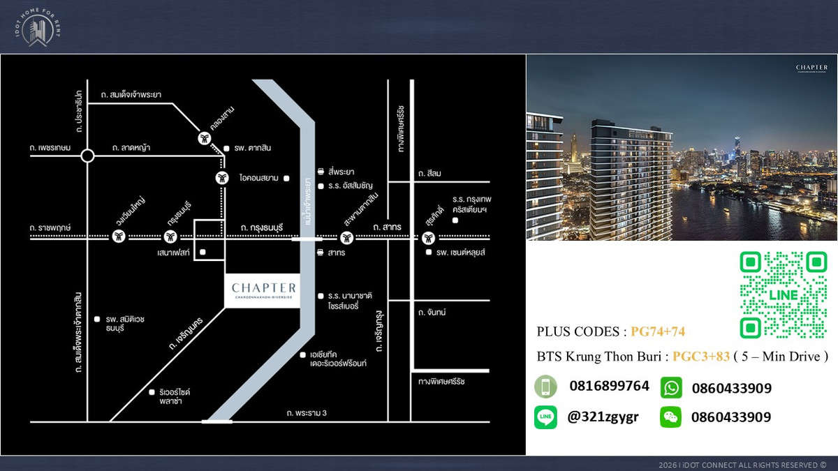 Chapter Charoennakhon-Riverside คอนโดวิวแม่น้ำเจ้าพระยา เพียง 5 นาที ถึง ICONSIAM และ BTS กรุงธนบุรี 3+1 BED I 3+1 BATH I 28th FLR. I BUILDING A I 149.73 SQM I RIVER VIEW I ลิฟท์ภายในห้องชุด THB 135,000 / เดือน ข้อมูลโครงการ - อาคาร A ชั้น 45 - อาคาร B ชั้น 43 ชั้น - อาคารส่วนกลาง สิ่งอำนวยความสะดวก 6 ชั้น สิ่งอำนวยความสะดวก ริเวอร์เลานจ์ I ริเวอร์ไซด์บูเลอวาร์ด I ศูนย์ออกกำลังกายริมสระน้ำ I ครัวร่วม I เลานจ์ริมสระน้ำ I คิดส์คลับและบ่อทราย I สกายเลานจ์ I แอ็คทีฟยิม I ระบบควบคุมการเข้า-ออกด้วยบัตร I กล้องวงจรปิด I รปภ. 24 ชม. สถานที่ใกล้เคียง 7-11 (30 นาที) I เสนาเฟสต์ (700 ม.) I ไอคอนสยาม (1.5 กม.) I ตลาดเจริญรัถ (3.3 กม.) I โรบินสัน บางรัก (3.7 กม.) I ไทยช่วยไทยพลาซ่า (3.8 กม.) I เดอะมอลล์ ท่าพระ (4 กม.) I เอเชียทีค (4.2 กม.) I บิ๊กซี บางปะกอก (5 กม.) I สีลมคอมเพล็กซ์ (6 กม.) I เซ็นทรัล พระราม 3 (8.3 กม.) I รพ.ตากสิน (2 กม.) I รพ.สมเด็จพระปิ่นเกล้า (3.1 กม.) I รพ.เจริญกรุงประชารักษ์ (3.7 กม.) I รพ.เซนต์หลุยส์ (4 กม.) I รพ.จุฬาลงกรณ์ (5.9 กม.) I รพ.บางปะกอก (7 กม.) I รร.กรุงเทพคริสเตียนวิทยาลัย (3.3 กม.) I รร.อัสสัมชัญบางรัก (3.5 กม.) I รร.วัดสุทธิวราราม (4.5 กม.) I ม.เทคโนโลยีราชมงคลมหาวิทยาลัยเทคนิคกรุงเทพ (5.2 กม.) I จุฬาลงกรณ์มหาวิทยาลัย (6.9 กม.) สนใจติดต่อ: คุณโบกี้ (BOGIE) คลิกเพื่อดูเบอร์โทรติดต่อ Line: @321zgygr or click link : https://lin.ee/w5ds91K Exclusive Contract Agent (Certified by TPQI Level - 1)