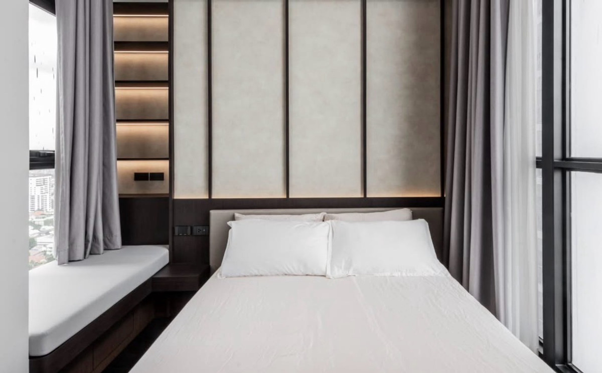 🛏️ 𝐑𝐨𝐨𝐦 𝐃𝐞𝐭𝐚𝐢𝐥𝐬 • Duplex Unit • 2 Bedrooms • 2 Bathrooms • Size: 61.10 SQ.M. • Floor: 32nd • Fully Furnished & Ready to move in 📺 𝐅𝐮𝐫𝐧𝐢𝐭𝐮𝐫𝐞 & 𝐀𝐩𝐩𝐥𝐢𝐚𝐧𝐜𝐞𝐬 • 5 ft Bed & Mattress (เตียง 5 ฟุต