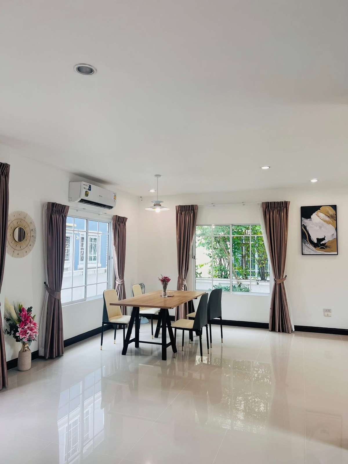 M1584 ให้เช่าบ้าน นลินวิลล์ 5 (Nalinville 5) – บ้านใหญ่พร้อมอยู่ เนื้อที่ 60 ตรว. บ้านเช่าพร้อมอยู่ เฟอนิเจอร์ + เครื่องใช้ไฟฟ้า แต่งสวนสไตล์อังกฤษ ทำเลดี ใกล้ถนนกรุงเทพกรีฑา-ตัดใหม่✨ 3 ห้องนอน 3 ห้องน้ำ 💰 ค่าเช่า 25,000฿/เดือน (สัญญา 1 ปี, มัดจำ 2 เดือน, ล่วงหน้า 1 เดือน) • แอร์ 4 เครื่อง ❄️ • เครื่องทำน้ำอุ่น 2เครื่อง 🚿 • Digital TV 1 เครื่อง 📺 • ตู้เย็น 🍨 • เครื่องซักผ้า 👚 • ไมโครเวฟ 🍗 จุดเด่น: • บ้านพร้อมอยู่ สภาพดี ดูแลอย่างดี • ทำเลเงียบสงบ เหมาะกับการพักอาศัย • หมู่บ้านใกล้ปั๊ม ปตท., Big C, ร้านสะดวกซื้อ 7-11 • การเดินทางสะดวกมาก สามารถเดินทางเข้า-ออก ได้ทั้งทางถนนรามคำแหง เข้าซอยราฏร์พัฒนา (มีสทีน) หรือเข้า-ออกทางถนนร่มเกล้า เชื่อมต่อถนนเคหะร่มเกล้า ถนนสายหลักหลายสาย และถนนกรุงเทพกรีฑา-ตัดใหม่ •ใกล้รถไฟฟ้า ใช้เวลาเดินทางประมาณ 10 นาที -Airport Link ลาดกระบัง -Airport Link บ้านทับช้าง -BTS สายสีส้ม) Contact Line : atlasestatemhee Tel : คลิกเพื่อดูเบอร์โทรติดต่อ