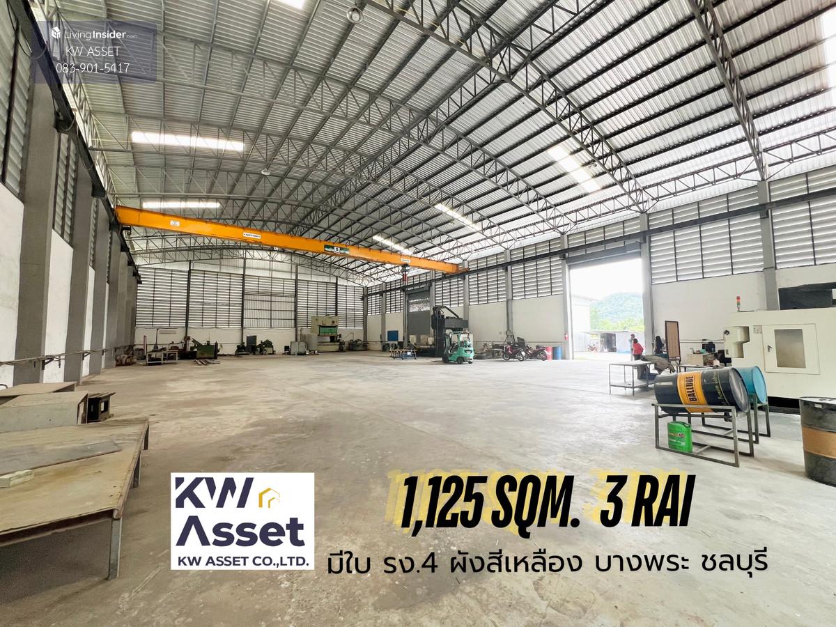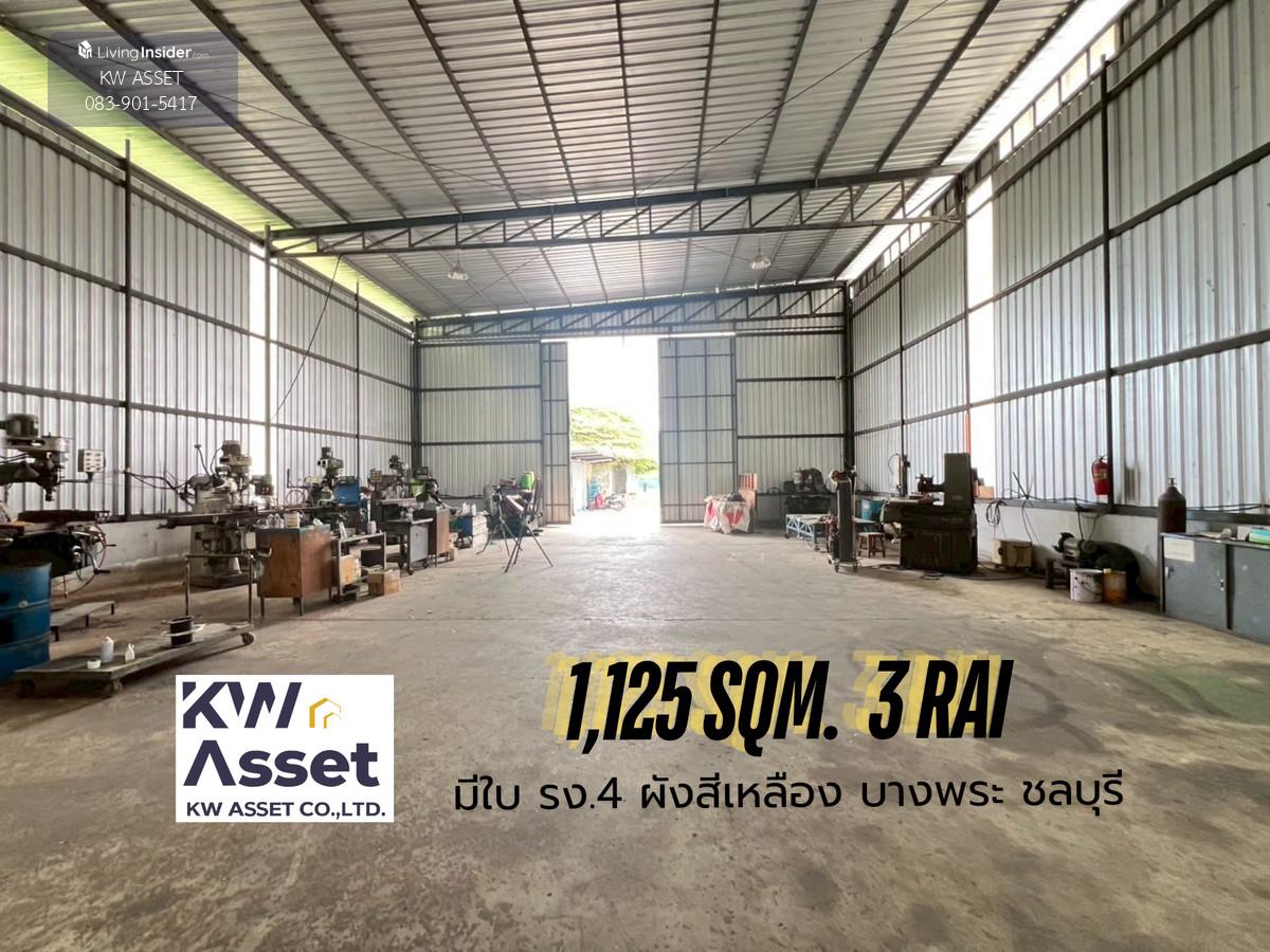 ขายที่ดิน 3 ไร่ พร้อมโรงงาน 1,125 ตรม. มีใบ รง.4 ที่ตั้ง ต.บางพระ อ.ศรีราชา จ.ชลบุรี 🟨ที่ดินผังสีเหลือง ราคา 25,000,000 บาท ขายพร้อมใบอนุญาต รง. 4 - ประเภท 41(2) ผลิตแม่พิมพ์โลหะ - ขายพร้อมเครน 5 ตัน