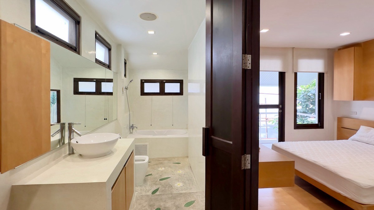 ððļ A beautifully renovated 2-story contemporary home in pristine condition. Perfectly located near international schools and the expressway, offering seamless travel to the city centre or the Suvarnabhumi airport. @ Pattanakarn 74 Size 75 Sq.wa Using Area 230 Sq .m 3 bedroom & 4 bathroom 45,000 THB / month ð Why Youâll Love This Home: - Space & Privacy: 230 sq.m. of functional living space. It features a private home office and a separate maidâs quarter to ensure maximum privacy for your family. - High Quality: Meticulously maintained and has undergone 3 major renovations, most recently in October 2025. The use of authentic solid wood throughout the house provides a sophisticated, luxury feel. - Comfort Living: Enjoy an airy atmosphere with high ceilings (2.7m). The house is built with Double-Layer Walls to provide excellent heat insulation and soundproofing for a peaceful stay. - Prime Location: Conveniently located near the Motorway, Samitivej Srinakarin Hospital, and local amenities like the Pattanakarn Fresh Market. Proximity to Thong Lo & Ekkamai. ð Fully furnished and equipped with all essential appliancesâready for you to move in! # āļāđāļēāļāđāļāļĩāđāļĒāļ§āļāļąāļāļāļēāļāļēāļĢ âïļ āļāļĨāļīāļāđāļāļ·āđāļāļāļđāđāļāļāļĢāđāđāļāļĢāļāļīāļāļāđāļ ( Agent ) ð buapit1982 https://line.me/ti/p/OTzAhIm3id