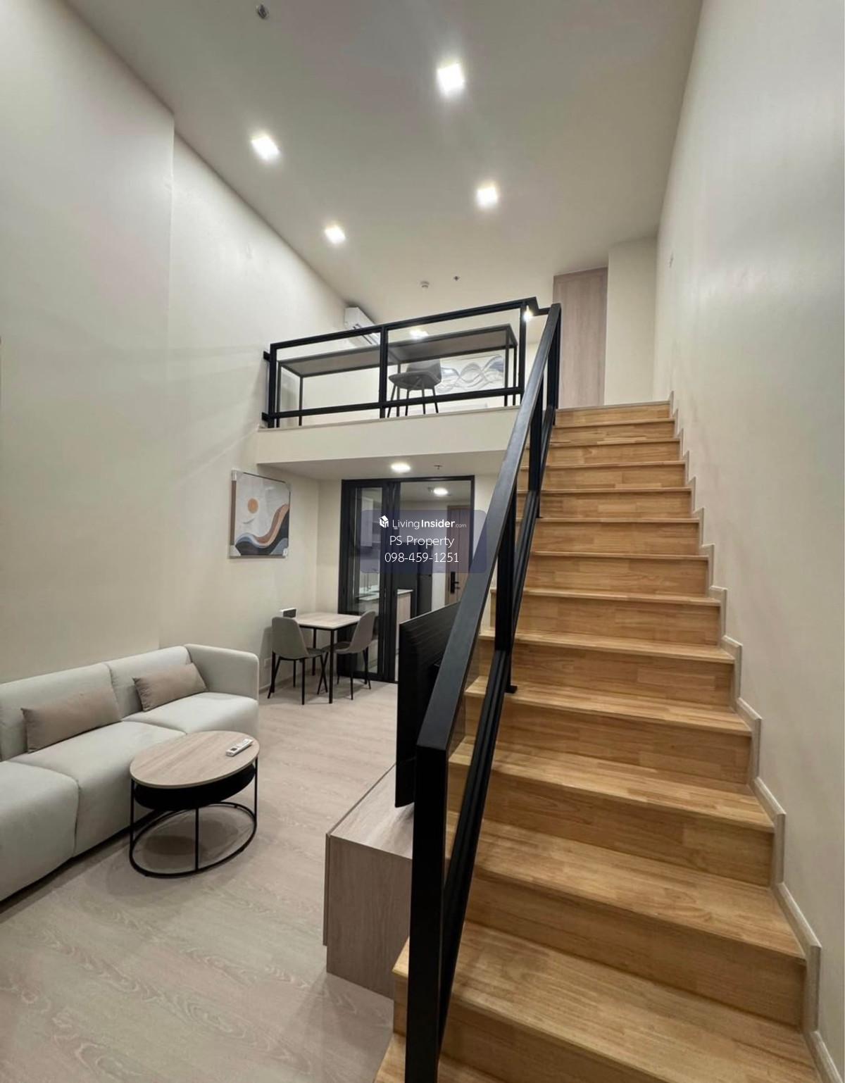 ราคา: 25,000 บาท/เดือน  ขนาด: 43 ตรม.  ชั้น: 20 รูปแบบห้อง: DUPLEX ONE BEDROOM สิ่งอำนวยความสะดวก: ร้านสะดวกซื้อ, กล้องวงจรปิด, คีย์การ์ด, ฟิตเนส, สระว่ายน้ำ, ห้องซักรีด, รปภ. 24 ชม. เฟอร์นิเจอร์: ทีว