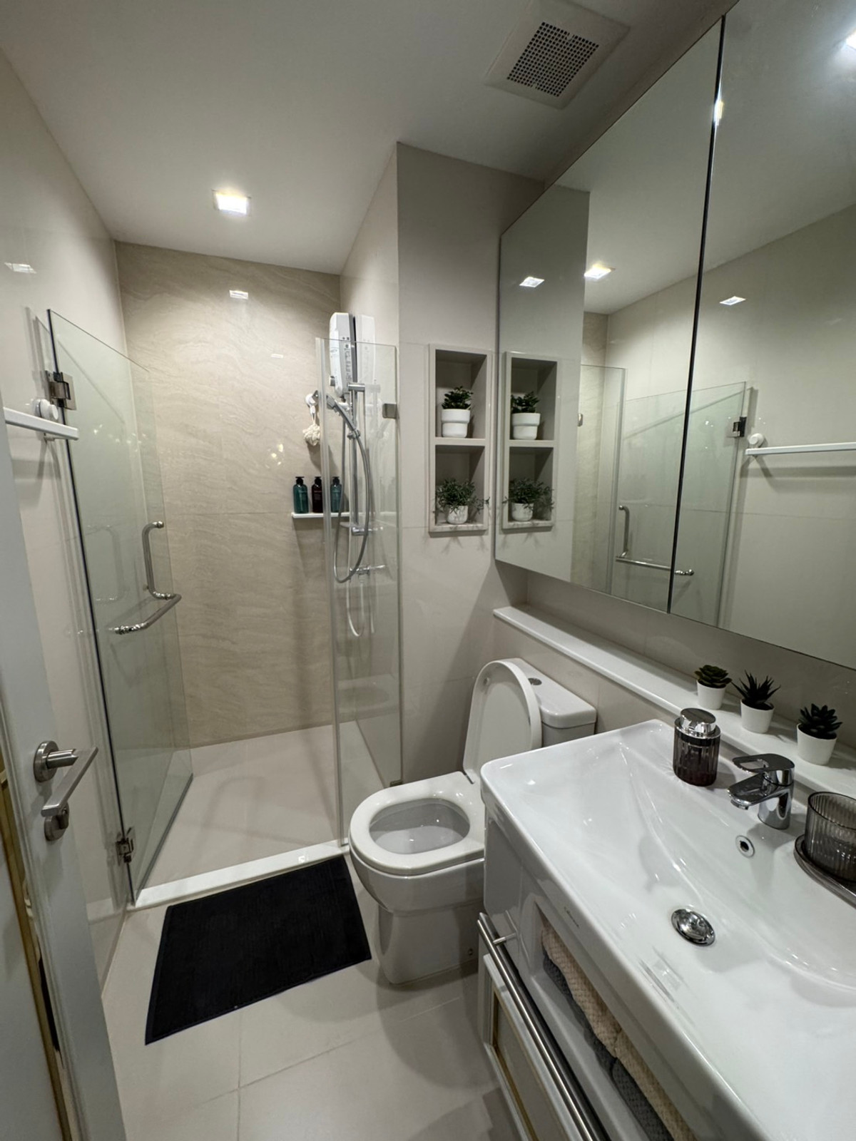 - เครื่องซักผ้า/อบผ้า อยู่ในตู้เก็บของ ไม่รกสายตา