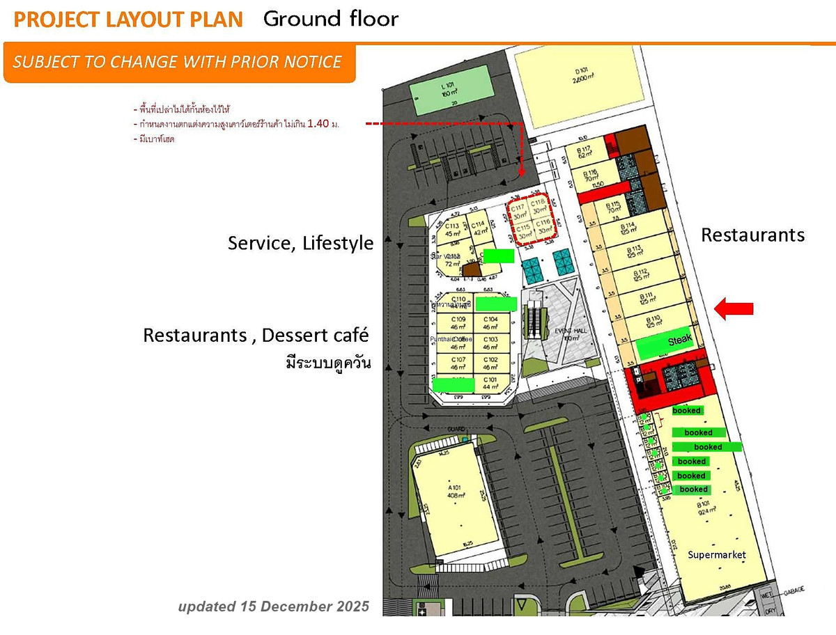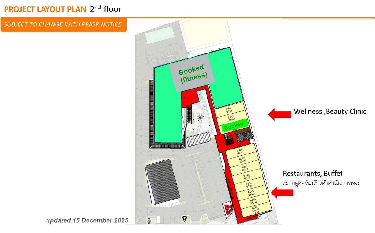 โครงการมอลล์ใหม่ ย่านบางนา ลาซาล แบริ่ง สามารถเข้าทางซอยสุขุมวิท 105 หรือ 107 ก็ได้ กำลังดำเนินการก่อสร้าง คาดว่าจะแล้วเสร็จช่วงกลางปี 2569 และเข้าชมโครงการได้ กุมภาพันธ์ 2569 นี้ ขนาดพื้นที่ไซส์เล็ก เหมาะสมสำหรับร้านชา กาแฟ คาเฟ่ เริ่มต้น 30 ตรม. รวมยูนิตให้ได้พื้นที่มากขึ้นก็ได้ สำหรับร้านอาหารไทย ไทยอีสาน บุฟเฟต์ หมาล่า หรือฟาสต์ฟู้ด ชั้น 2-3 เหมาะมากสำหรับฟิตเนส สปา/เวลเนส คลีนิคความงาม เวชกรรมต่างๆ หรือธุรกิจสันทนาการ อาทิ โรงเรียนสอนเต้น, ศูนย์กีฬาและการออกกำลังกาย ฯลฯ ค่าเช่าเริ่มต้น 500-1,100 บาท/ตรม. ขึ้นกับโซนนิ่ง ระยะทาง และสถานที่ใกล้เคียง: - BTS บางนา 3 กม. / BTS แบริ่ง 2.5 กม. - โรงเรียนบางกอกพัฒนา (900 เมตร), โรงเรียนนานาชาติเซนต์แอนดรูวส์, โรงเรียนเซนต์โยเซฟบางนา ฯลฯ - บางกอกมอลล์ และไบเทคบางนา - คอนโดมิเนียมและบ้านจัดสรร อีกหลายสิบแห่ง เงินจอง 1 เดือน / ค่าเช่าล่วงหน้า 4 เดือน ค่าน้ำ 25 บาท ค่าไฟ 6.80 บาท