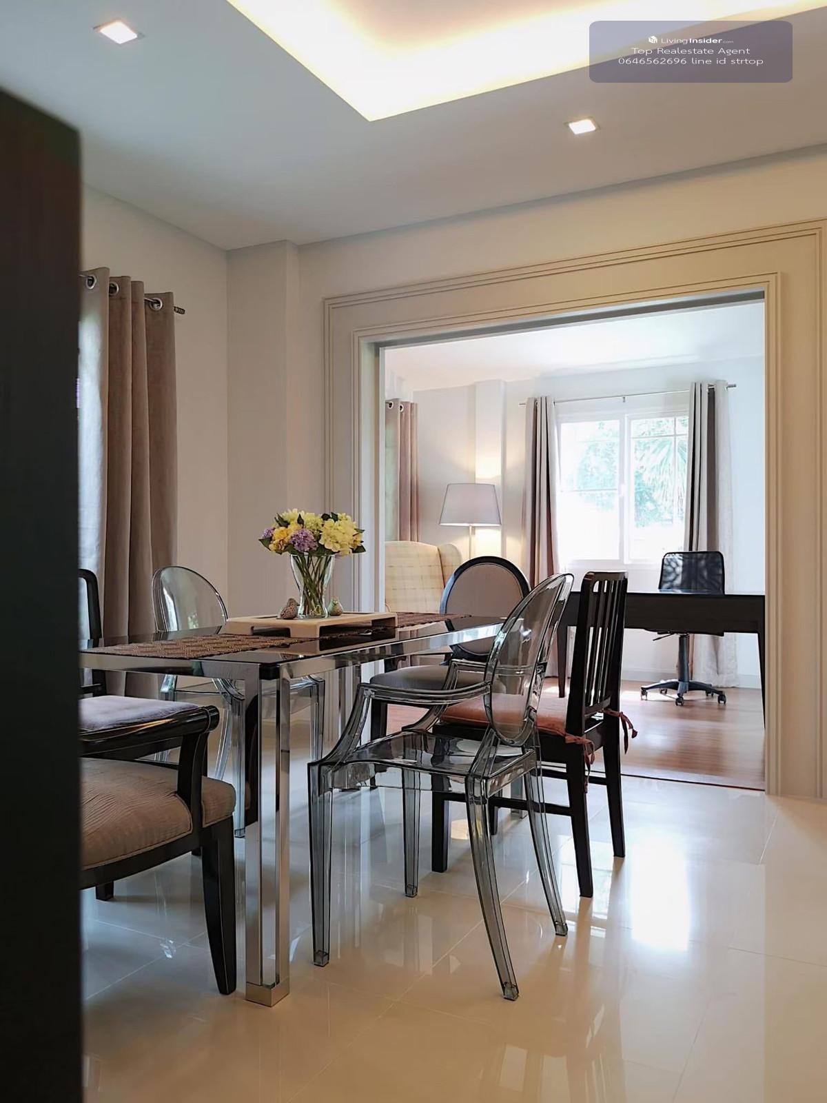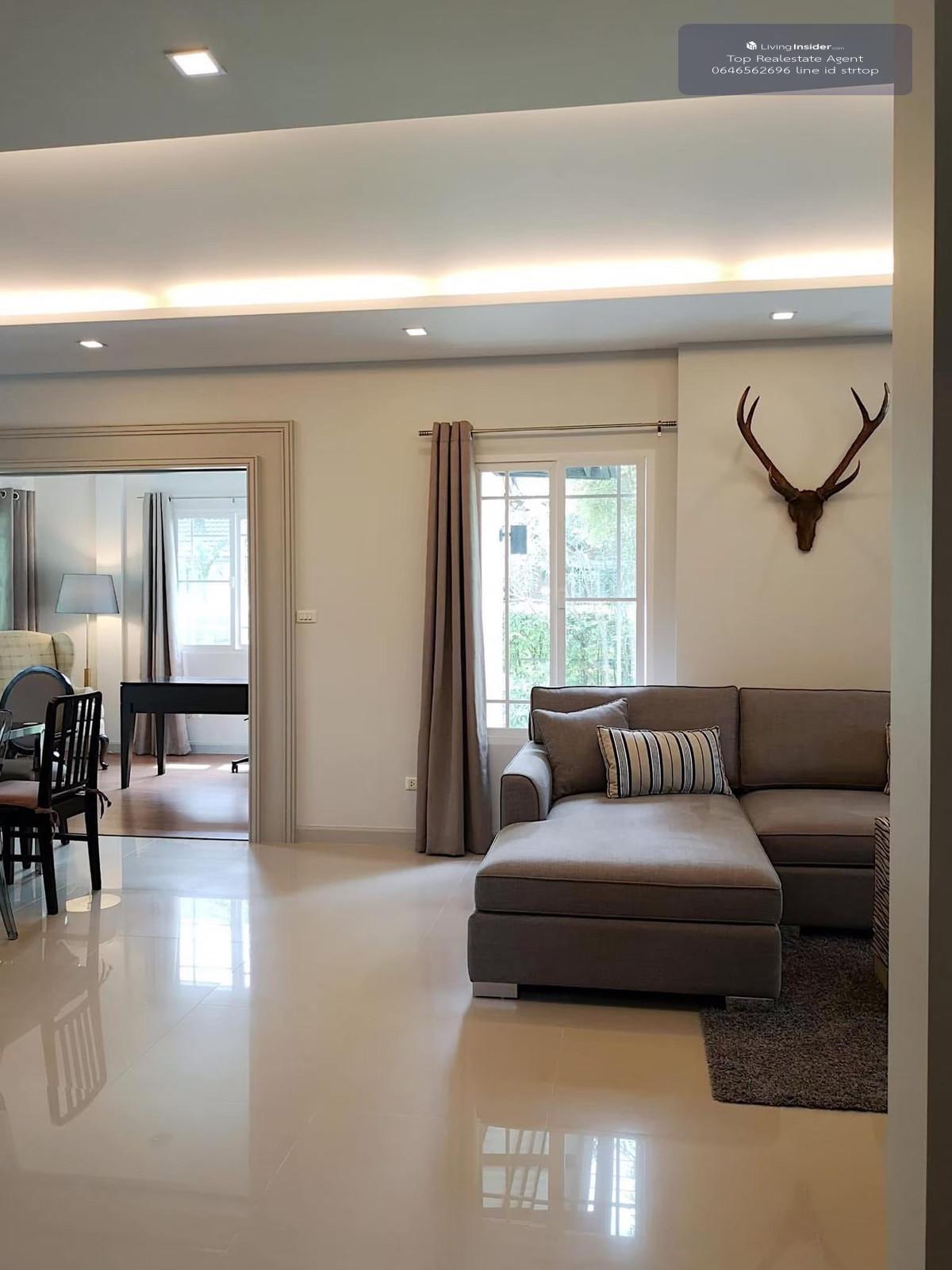 ขายเช่าบ้านเดี่ยวพื้นที่กว้างฮวงจุ้ยดี มัณฑนา พระราม9-ศรีนครินทร์ 3ห้องนอน 91ตร.วา - ขนาดพื้นที่ใช้สอยบ้าน 250 ตรม.++ - ขนาดที่ดินบ้าน 91.5 ตรว. ชั้นล่าง - Foyer ทางเข้าบ้านมีตู้ bullt-in เก็บรองเท้าขนาดใหญ่ พร้อมที่นั่งสวมรองเท้า - ห้องเอนกประสงค์ ชั้นล่าง 2 ห้อง (ห้องใหญ่ 1 ห้องพร้อมตู้ built-in , ห้องเล็ก 1 ห้อง) - 1 ห้องน้ำชั้นล่าง - ห้องรับแขก ชุดโซฟา, TV - โซนรับประทานอาหาร ชุดโต๊ะเก้าอี้รับประทานอาหาร - pantry ตู้ bullt-in ซิ้งค์ล้างจาน, ตู้เย็น ไมโครเวฟ - ครัวไทย ตู้ built-in อปก. Hood เตา(แก๊ส), ซิงค์ล้างจาน ชั้นบน - 3 ห้องนอน (ใหญ่ 1 & เล็ก 2) ตู้เสื้อผ้า bullt-in ทุกห้อง, มีเตียงนอนทุกห้อง - 2 ห้องน้ำ (1 ในห้องนอนใหญ่, 1 ห้องน้ำแชร์ระหว่างห้องนอนเล็ก 2 ห้องชั้นบน) - ห้องแม่บ้าน (หรือใช้เป็นห้องซักรีด มีเครื่องซักผ้า) - ห้ิองน้ำแม่บ้าน (นอกตัวบ้าน) - โรงรถพร้อมหลังคาเต็มพื้นที่ ติดต่อนัดชมได้ที่ท๊อป คลิกเพื่อดูเบอร์โทรติดต่อ line id strtop