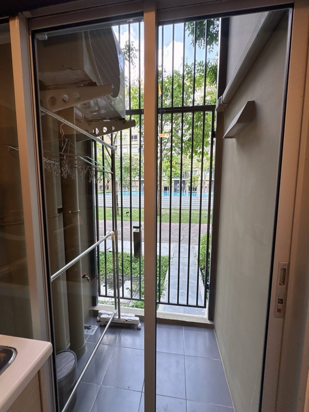 📣 ปล่อยเช่าคอนโดติด ม.กรุงเทพ (รังสิต) 📍 alive 2 วิวสระ 🏢 ตึก D ชั้น 1 💰 เช่าเพียง 8000 บาท/เดือน สญ 2 ปี ขนาด 27 ตรม ✨ พร้อมอยู่ เฟอร์ครบ เครื่องใช้ไฟฟ้าครบ! • แอร์ + ทีวี + ตู้เย็น + เครื่องซักผ้า +