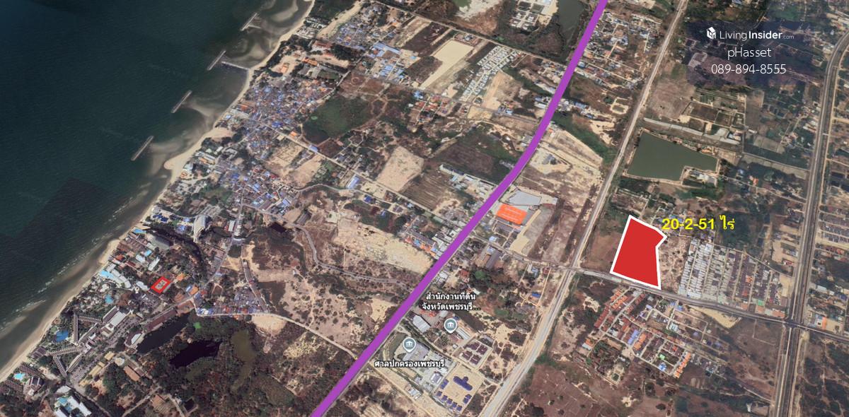  3.2 กม. จากแยกต่างระดับ ห้วยตะแปด (บายพาส ชะอำ-ปราณบุรี)  0.6 กม. จากแยกบางไทรย้อย,บางควาย (ถนนเพชรเกษม กม.200+700 ชะอำ-หัวหิน)  ที่ดินแปลงใหญ่ รูปร่างสวย หน้ากว้างติดถนน กว่า160เมตร ปรับการใช้พื้