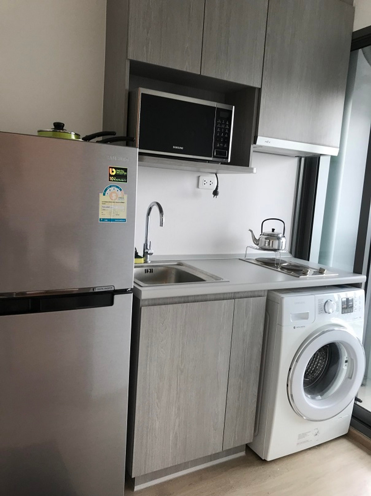 ให้เช่า ห้องสวย ไอดีโอ วุฒากาศ ( Ideo wutthakat ) ติด BTS วุฒากาศ 110 เมตร พร้อมเฟอร์+ เครื่องซักผ้า เพียง 8,500 บาท ขนาด 22ตรม. สตูดิโอ 1 ห้องน้ำ ชั้น 18 วิวสวย พร้อม เครื่องซักผ้า เตียง ตู้เสื้อผ้า