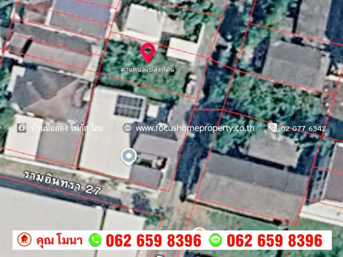 ขาย ที่ดินเปล่า ซอยรามอินทรา 27 : เนื้อที่ 54 ตารางวา เหมาะสร้างบ้าน ห่างจากปากซอย 500 เมตร : หน้ากว้าง 11 เมตร ลึก 20 เมตร : หันหน้าทางทิศตะวันออก ราคาขาย 3,300,000 บาท สนใจติดต่อ คุณ โมนา (ประภัสสรณ์) Mobile : คลิกเพื่อดูเบอร์โทรติดต่อ , Line : คลิกเพื่อดูเบอร์โทรติดต่อ ตัวแทนขายอสังหาฯ บริษัท โฟกัส โฮม พร็อพเพอร์ตี้ จำกัด แผนที่ ซอย รามอินทรา 27 แยก 7 แขวงอนุสาวรีย์ เขตบางเขน กรุงเทพมหานคร 10220 https://maps.app.goo.gl/oxdFLZFjTvNZAKCF7 จุดเด่น/ทำเลที่ตั้ง : ติดถนนหลักรามอินทรา : เดินทางสะดวกเข้าออกได้หลายเส้นทาง ถนนรามอินทรา ถนนเทพารักษ์ ถนนพหลโยธิน ทางด่วนรามอินทราทางด่วนดอนเมืองโทลเวย์ : รถไฟฟ้าสายสีชมพู , สนามบินดอนเมือง บริษัท โฟกัส โฮม พร็อพเพอร์ตี้ จำกัด Hotline : คลิกเพื่อดูเบอร์โทรติดต่อ Office : คลิกเพื่อดูเบอร์โทรติดต่อ www.focushomeproperty.co.th Facebook fanpage : บ้านมือสอง โฟกัสโฮม #ที่ดินรามอินทรา #ที่ดินเปล่า #ที่ดินพร้อมปลูกสร้าง #ที่ดินสวยรามอินทรา #ที่ดินทำเลดี #ที่ดินใกล้ทางด่วน #ที่ดินใกล้รถไฟฟ้า #ที่ดินราคาถูก #ขายที่ดินราคาถูก #ที่ดินถมแล้ว #ฝากขายบ้าน #รับฝากขายบ้าน #นายหน้าขายบ้าน #หาบ้าน #บ้านทำเลดี #อ้อบ้านมือสอง #โมนาบ้านมือสอง #บ้านมือสองคุณโมนาคุณอ้อ #ฝากขายบ้าน #รับฝากขายบ้าน #นายหน้าขายบ้าน #โฟกัสโฮมขายบ้าน #ฝากขายบ้าน #รับฝากขายบ้าน #นายหน้าขายบ้าน #โฟกัสโฮมขายบ้าน #AgentForRealEstate #Focushomeproperty