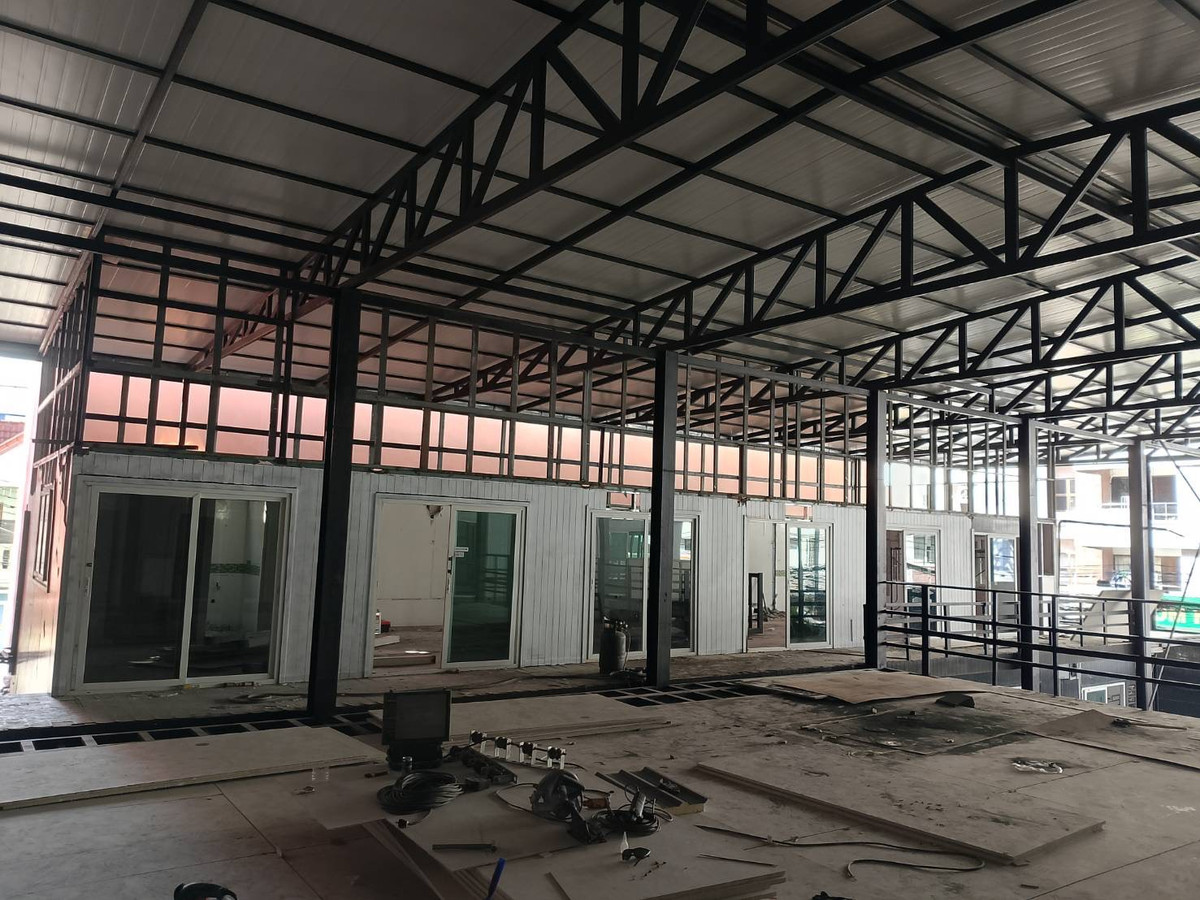 เป็นอาคาร 2 ชั้น รูปตัว U (u-shape layout) มี 3 อาคาร บนเนื้อที่ดิน 280 ตรว. พื้นที่ใช้สอยรวมราวๆ 1,500 ตรม. มีหลังคาคลุมทุกอาคารทั้งหมดของพื้นที่ บริเวณตรงกลางพื้นที่ หลังคาสูง 8 เมตร มีที่จอดรถ ในซอยนี้มีร้านอาหารเกาหลีและอพาร์ทเมนต์มากมาย เชื่อมต่อถนนประชาราษฎร์บำเพ็ญ ที่มีสุกี้จินดา 2 สาขา และโรงแรม 3 ดาวจำนวนมาก อยู่ในระยะเดินได้จาก MRT ห้วยขวาง ทางออก 1 เอ็มไนน์สแควร์ (M9 Square) โครงสร้างอาคารเป็นคอนกรีตเสริมเหล็ก ไม่ใช่สิ่งปลูกสร้างชั่วคราว เหมาะสำหรับทำที่พักให้เช่า air bnb, โรงพยาบาลสัตว์, คลีนิคเวชกรรม, ทำฟัน, สำนักงาน, co-working space and meeting point, personal weight training, gym เป็นต้น สถานที่ใกล้เคียง ได้แก่ โรงแรมฮอปอินน์ ปากซอย, จูบิลี่เพรสทีจทาวเวอร์, อาคารเมืองไทยภัทร, ย่านชุมชนสุทธิสาร, เทวาลัยพระพิฆเนศ สี่แยกห้วยขวาง, สุกี้ตี๋น้อย, สุกี้จินดา, รร.ไอบิสสไตล์บางกอก รัชดา, รร.สวิสโซเทล กรุงเทพ รัชดา ฯลฯ สัญญาเช่า 3 ปี ค่าเช่า 200 บาท ต่อตรม. fixed ตลอดอายุสัญญาเช่า วางจอง 1 เดือน + เงินประกัน 3 เดือน อาคารพร้อมส่งมอบได้ทันที ตอนนี้กำลังทำหลังคา คาดว่าจะเสร็จสิ้นเดือน ก.พ แต่ผู้เช่าสามารถเข้าพื้นที่ตกแต่งไปพร้อมกันได้