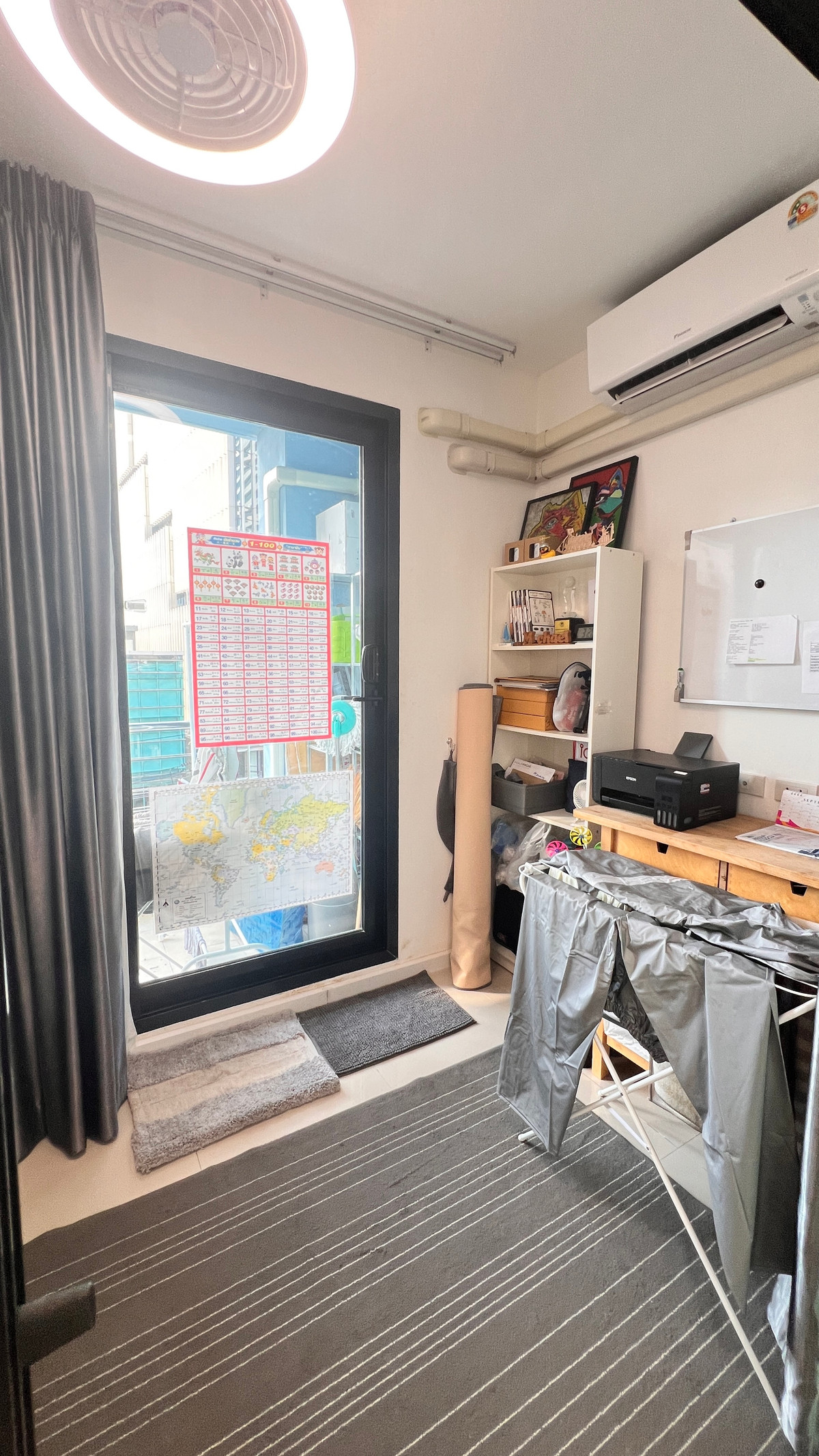 Spacious 2 bedroom condo overview This 2 bedroom, 2 bathroom condo offers a generous 97.36 square meters of interior space on the 5th floor of Supalai Premier @ Asoke in Bang Kapi, Huai Khwang, Bangkok. The home presents a practical single-storey layout with a bright open-plan living and dining area and a separate kitchen. Ownership is freehold and the unit is partially furnished, giving flexibility for personal styling. Key features and interior highlights The living room feels spacious and inviting with large windows and good natural light. A modern gray fabric sofa, accent rug and neutral tones create a calm setting. The adjoining dining zone has a white dining table with four chairs and enjoys bright light from wide windows and vertical blinds. A sliding glass door leads to a defined kitchen, helping contain cooking odors. The kitchen features modern white cabinetry with glossy fronts and a clean subway tile backsplash. There is a built-in electric oven, four-burner electric cooktop, double basin sink and a tall refrigerator. A dedicated microwave niche and storage cabinets offer practical cooking and storage space. The primary bedroom includes a double bed with a padded upholstered headboard and a fitted headboard wall. Large windows bring in natural light, while floor-to-ceiling blackout and sheer curtains provide light control. The neutral color scheme with white walls and a compact layout gives a restful atmosphere. An air conditioning unit and ceiling light fixture add everyday comfort. The second bedroom is a compact room with a single bed and full-length blackout curtains in a dark gray tone. A tall white built-in cabinet provides storage. The space suits a child, guest room or flexible sleeping area. The modern bathroom offers a glass-enclosed walk-in shower with sliding doors and floor-to-ceiling wall tiles. A wide mirror above the vanity, stone or quartz countertop, undermount sink and single-handle faucet provide a clean, contemporary feel. A toilet with bidet spray and recessed lighting completes the space. A bright corridor connects the rooms and reflects light from a large window. A sliding glass partition with a black frame separates an enclosed study or hobby nook. Glossy light-colored floor tiles and white walls create a clean, modern look throughout. Another compact room with floor-to-ceiling glass and balcony access serves as a workspace or utility area. An air conditioning unit and curtains help manage temperature and privacy. Location and surrounding area The condo sits within Supalai Premier @ Asoke, a high-rise project with 38 floors and 653 units in Bang Kapi, within the Huai Khwang district of Bangkok. The area provides the urban advantages of central Bangkok living in a city-fringe setting. Nearby conveniences and urban access The location places residents in proximity to major city routes, business areas and lifestyle destinations in and around Asoke and Huai Khwang. Everyday amenities, offices and entertainment zones are within practical reach for city residents. Benefits and value points This property offers the advantages of a large 2 bedroom layout in a modern high-rise setting. Residents gain a clear separation between living, dining and kitchen zones, along with a practical study or hobby space and a flexible utility or office room. The neutral design, abundant natural light and partial furnishing create an easy base for personal customization. Freehold ownership, a mid-low floor position and a functional floor plan add strong long-term appeal for both own use and rental investment. ส่วนลดและโปรโมชั่นสุดคุ้ม เพียงลงทะเบียนก่อนเข้าชมโครงการ ทำนัดหมายเข้าชมโครงการได้ทุกวัน :) หรือสอบถามข้อมูลเพิ่มเติม คลิก! https://line.me/ti/p/AnAGnY3kdD For more information Tel: คลิกเพื่อดูเบอร์โทรติดต่อ WhatsApp: คลิกเพื่อดูเบอร์โทรติดต่อ LineID : ployfahfah Link: https://line.me/ti/p/AnAGnY3kdD Co agent welcome*