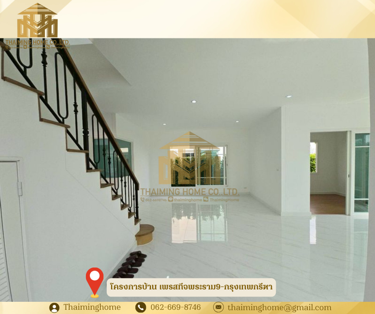 ขายบ้าน โครงการบ้าน เพรสทีจพระราม9-กรุงเทพกรีฑา (รหัสทรัพย์TH06-0226) รายละเอียด - แบบบ้าน : Siena - พื้นที่ใช้สอย 216 ตร.ม. - 4 ห้องนอน 4 ห้องน้ำ - ที่จอดรถ 2 คัน - EV Charger ที่โรงจอดรถ - ห้องพักผ่อน - ห้องพระ - ห้องรับประทานอาหาร - ห้องครัว สถานที่ใกล้เคียง - ทางขนานมอเตอร์เวย์ - ปั้มน้ำมันบางจาก - บี-ควิก กาญจนาภิเษก-ทับช้าง เงื่อนไขในการขาย - เริ่มต้นเพียง 12 ล้านบาท -------------------------------- บริษัท ไทยหมิง โฮม จำกัด Thaiming Home Co.,Ltd. 泰明房园 房产公司 ----------------------- Contact ติดต่อ : คลิกเพื่อดูเบอร์โทรติดต่อ Contact : คลิกเพื่อดูเบอร์โทรติดต่อ คุณหมิง(中文) Line ID: thaiminghome Line ID: @thaiminghome https://lin.ee/PkkHwYv Wechat : ThaimingHome E-mail : คลิกเพื่อดูอีเมล -----------------------