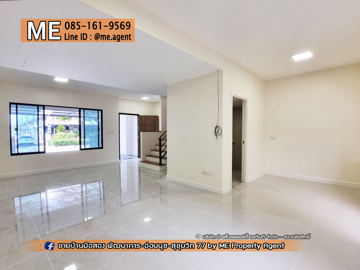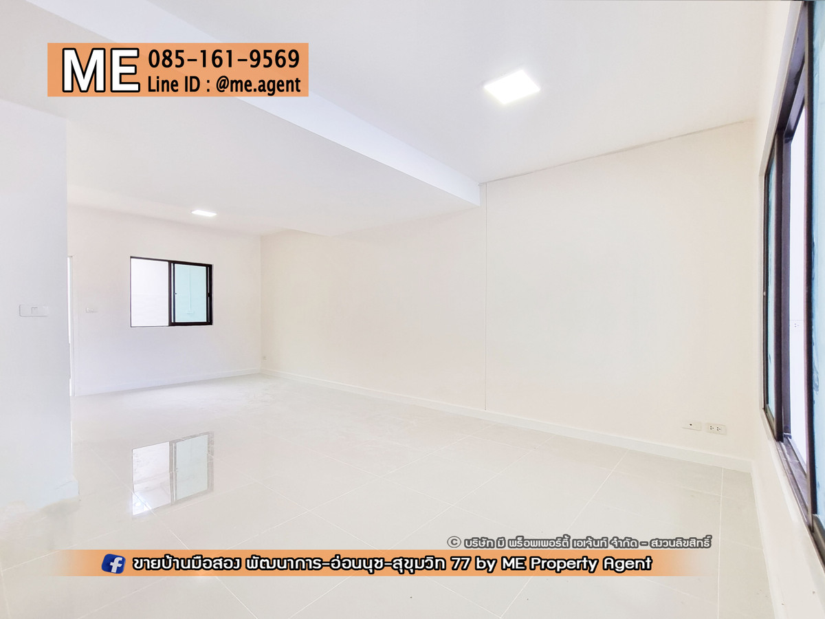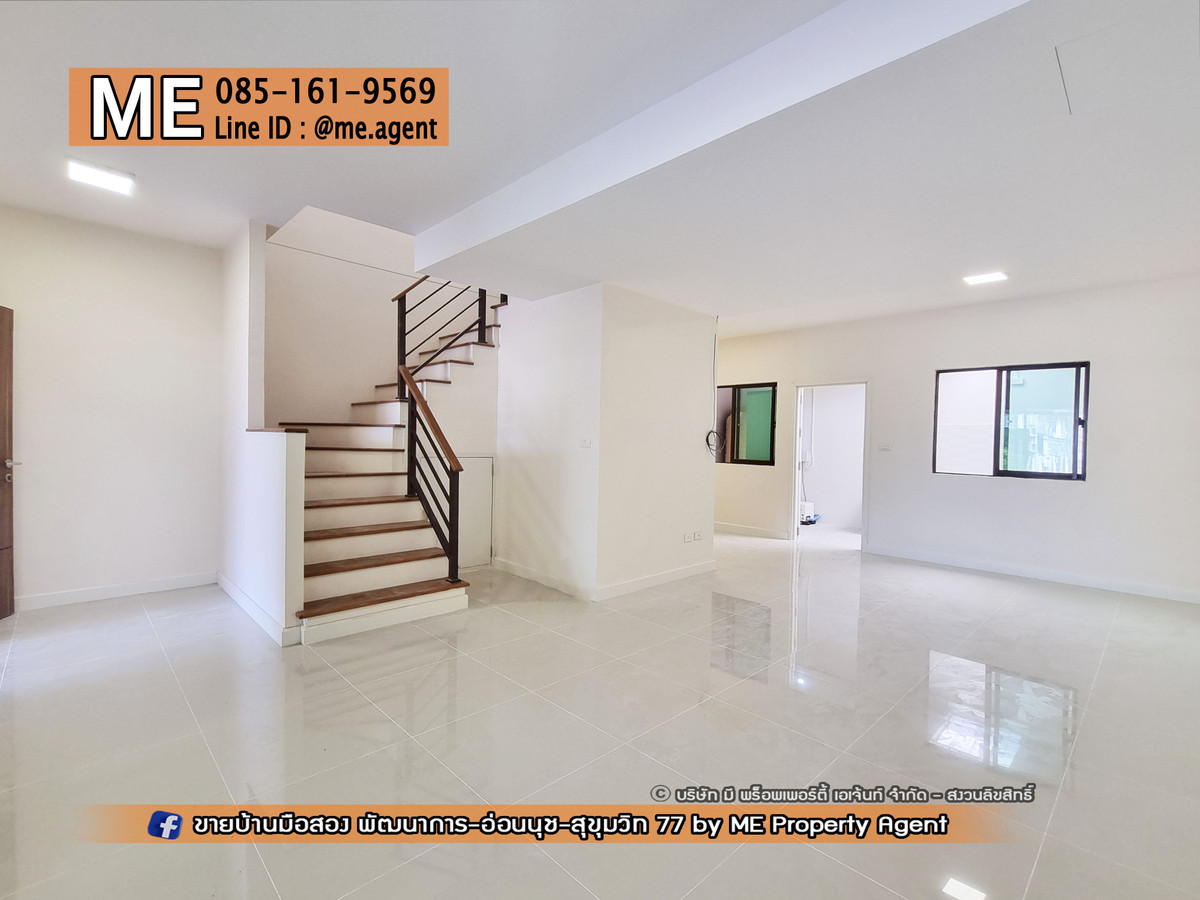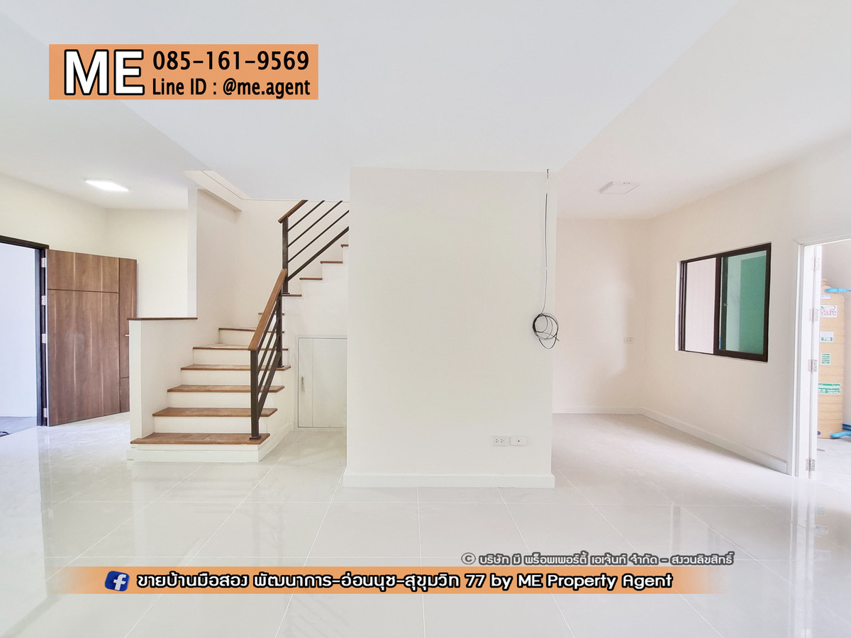 ขาย ทาวน์เฮ้าส์ 2 ชั้น พฤกษาวิลล์ 57 พัฒนาการ 32 รีโนเวทใหม่ พื้นที่ใหญ่กว่าหลังอื่น หน้าบ้านไม่ชนกับใคร ใกล้เอกมัย ทองหล่อ สุขุมวิท โทร คลิกเพื่อดูเบอร์โทรติดต่อ (TB63-23) . โครงการทาวน์โฮม-บ้านเดี่ยว ทำเลทอง ออกได้ 3 เส้นทางหลัก พัฒนาการ - อ่อนนุช - ศรีนครินทร์ ใกล้ BTS อ่อนนุช และ Airport Link หัวหมาก . - ขนาดใหญ่ 23.1 ตรว. 120 ตรม. - 3 ห้องนอน 2 ห้องน้ำ - 2 ที่จอดรถ - รีโนเวทใหม่ ทั้งหลัง . ราคาเพียง 4.59 ล้านบาท . สนใจติดต่อเราได้ที่ ME Property Agent โทร คลิกเพื่อดูเบอร์โทรติดต่อ LINE : @me.agent ติดตามชมบ้านสวยๆ ได้ในเพจ ME ทัก Inbox หรือ FACEBOOK : https://www.facebook.com/MEpropertyAgent . สิ่งอำนวยความสะดวกใกล้เคียง ทำเลดี เข้าออกได้หลายทาง ทั้ง ซ.อ่อนนุช 39 ศรีนครินทร์ 24 ซอยพัฒนาการ 30,32,38,44 ● Big C , Lotus ● พาราไดรซ์,ซีคอน ● ตลาดเอี่ยม, ตลาดรถไฟ ● ธัญญาพาร์ค ● โรงพยาบาล . สิ่งอำนวยความสะดวกในโครงการ มีสระว่ายน้ำ สวนสาธารณะ รปภ.24ชั่วโมง Fitness . #MEpropertyagent #ONEStopService #บ้านมือสอง #บ้านพัฒนาการ #บ้านอ่อนนุช #บ้านพร้อมอยู่ #ทาวน์เฮ้าส์อ่อนนุช #ทาวน์เฮ้าส์พัฒนาการ #บ้านเดี่ยวพร้อมอยู่ #บ้านเดี่ยว #เดอะปาล์ม #thepalm #พัฒนาการ38