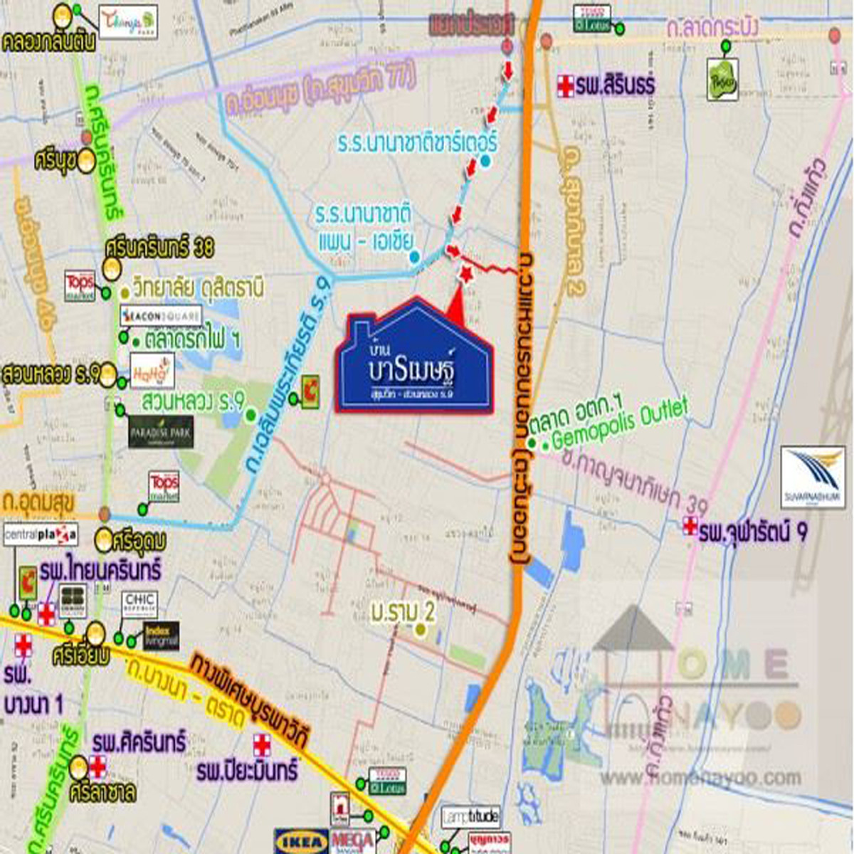 ขายบ้านเดี่ยว92.7ตรว. หลังมุม โครงการบ้านบารเมษฐ์ สุขุมวิท-สวนหลวง ร.9 จัดกู้ฟรี . บ้านเดี่ยว 2 ชั้น 92.7 ตารางวา พื้นที่ใช้สอย 200 ตารางเมตร 3ห้องนอน 3ห้องน้ำ 1ห้องรับแขก 1ห้องครัว 2ที่จอดรถ - วัสดุปูพื้น : ชั้นล่าง-หินอ่อน / ชั้นบน-ลามิเนต - หน้าบ้านหันทิศเหนือ . ที่ตั้งทรัพย์สิน : โครงการบ้านบารเมษฐ์ สุขุมวิท-สวนหลวง ร.9 ถ.เฉลิมพระเกียรติ ร.9 ซ.เฉลิมพระเกียรติ62 แขวงประเวศ เขตประเวศ กรุงเทพมหานคร พิกัดทรัพย์ : https://maps.app.goo.gl/9vLhVKBm91THZmQPA การเดินทาง เริ่มจาก ถ.อ่อนนุช (ถ.สุขุมวิท 77) > แยกศรีนุช > แยกประเวศ > ถ.เฉลิมพระเกียรติ ร.9 > ถ.เฉลิมพระเกียรติร.9 ซ.62 >—-350 ม.—-> บ้านบารเมษฐ์ สุขุมวิท – สวนหลวง ร.9 *ใกล้เลียบ ถ.วงแหวนรอบนอกฝั่งตะวันออก (ทางหลวงพิเศษหมายเลข 9 ถ.กาญจนาภิเษก) และติดกับโครงการศุภาลัย วิลล์ อ่อนนุช – สวนหลวง . ราคาขาย 7.7 ล้านบาท . จุดเด่น - บ้านเดี่ยวหลังมุม ขายตามสภาพ ต้องรีโนเวทก่อนเข้าอยู่อาศัย - หลังนี้เด่นที่เรื่องพื้นที่ เพราะเป็นหลังมุม มีพื้นที่ใช้สอยเยอะ - วัสดุก่อสร้างใช้อิฐมอญ 2 ชั้นช่วยป้องกันเรื่องเสียงรบกวน และช่วยเก็บความเย็นจากภายในและป้องกันไอร้อนจากภายนอก - ให้ความรู้สึกพิเศษโปร่ง โล่ง ด้วยฝ้าเล่นระดับแบบ high ceiling สูงสุดถึง 6 เมตร - ต้นไม้ใหญ่ในบ้านเยอะ ถ้าผู้ซื้อไม่ชอบ เจ้าของยินดีขุดย้ายออกให้ - เดินทางสะดวก ทั้ง ถ.เฉลิมพระเกียรติ ร.9, ถ.อ่อนนุช (ถ.สุขุมวิท77), ถ.วงแหวนรอบนอก(ตะวันออก), ถ.ลาดกระบัง และ ถ.ศรีนครินทร์ - เพียง 20 นาที ถึงสนามบินสุวรรณภูมิ สะดวกสุดๆ - ใกล้ตลาด ร้านค้า ร้านอาหาร โรงพยาบาล ห้างสรรพสินค้า และหน่วยงานราชการ - ราคาต่อรองได้ - บริการจัดสินฟรีเชื่อโดยมืออาชีพ - บริการรับผ่อนตรง . สิ่งอำนวยความสะดวกในโครงการ - สวนสาธารณะ 2 จุด - สระว่ายน้ำ - Fitness - ศาลาพักผ่อน พร้อม Lake - Jocking Track - Putting Green - รปภ.24ชม. . สถานที่ใกล้เคียง – ไบเทค บางนา – สนามบินสุวรรณภูมิ – รพ.สิรินธร – รพ.ปิยะมินทร์ – รพ.บางนา1 – รพ.ไทยนครินทร์ – ร.ร.นานาชาติ แพน – เอเชีย – ร.ร.นานาชาติชาร์เตอร์ – ม.รามคำแหง2 . สนใจติดต่อ คุณเนปจูน เบอร์โทรศัพท์ คลิกเพื่อดูเบอร์โทรติดต่อ / คลิกเพื่อดูเบอร์โทรติดต่อ / คลิกเพื่อดูเบอร์โทรติดต่อ