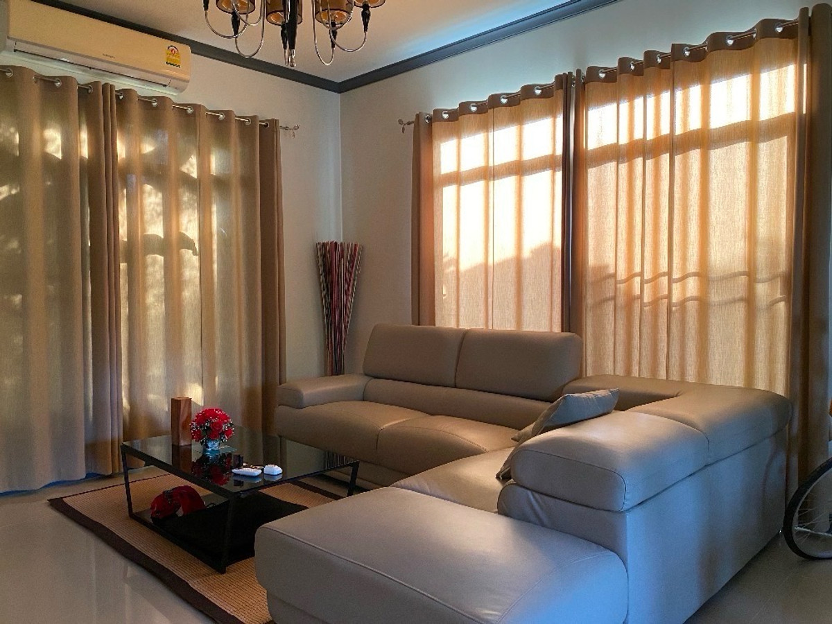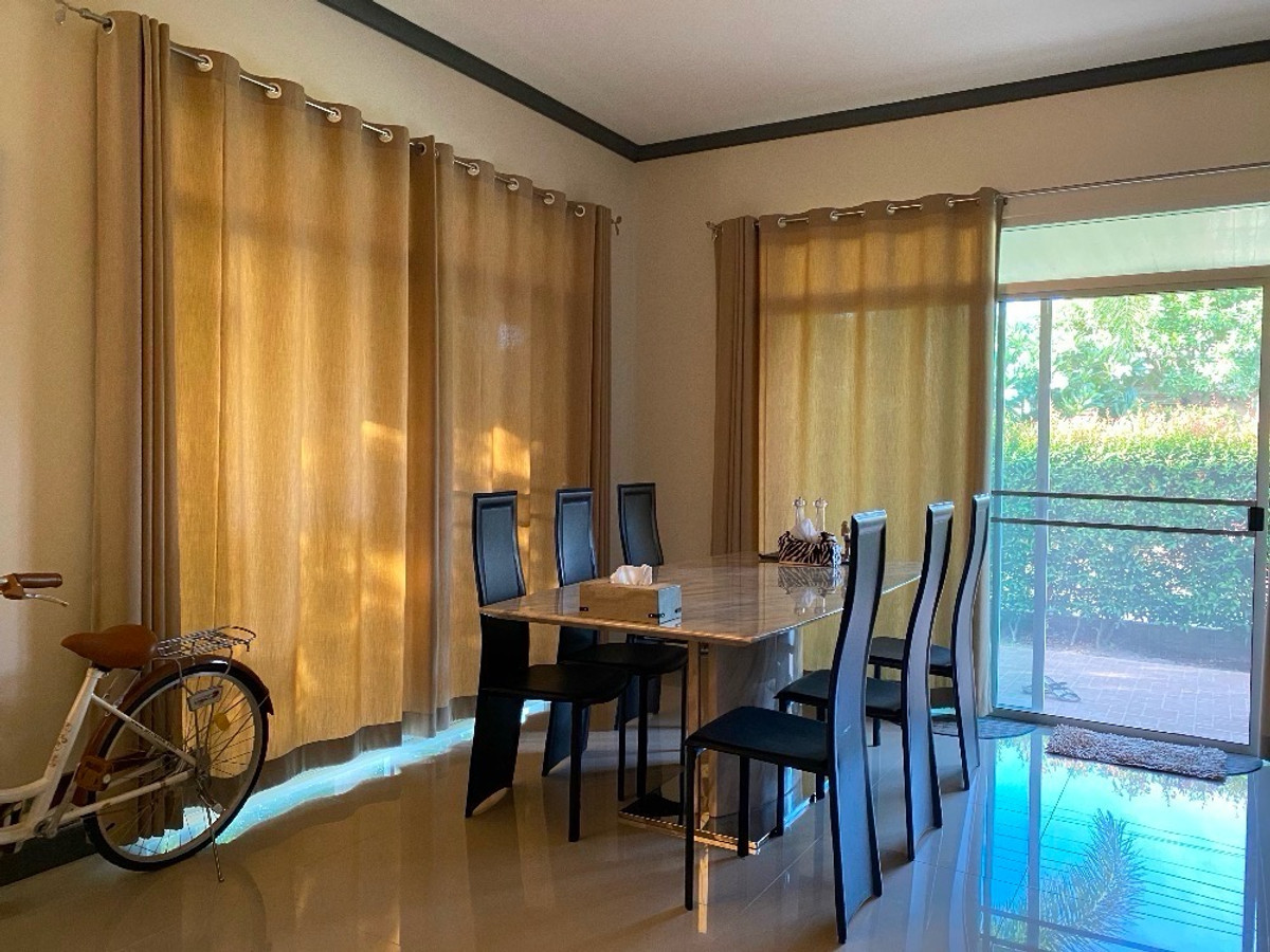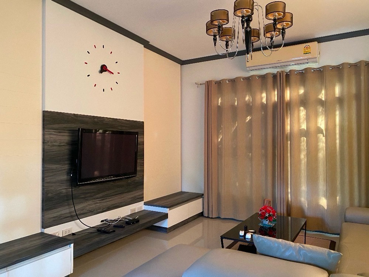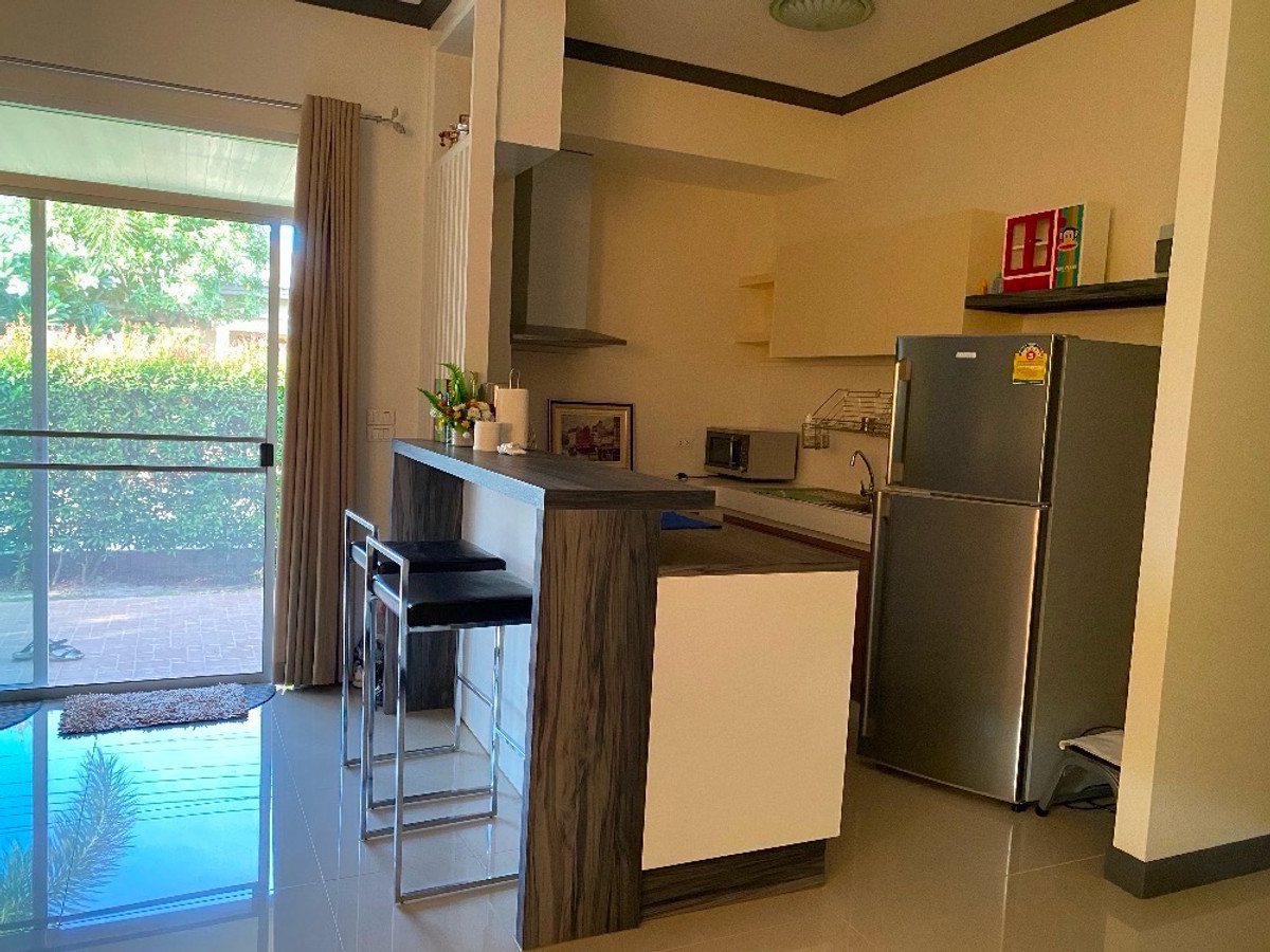 The housing estate is located on the main road. The house is 71.2 square wah with 2 bedrooms and 2 bathrooms. With a swimming pool, gym, tennis court, 24 hours security and CCTV. Fully furnished. Selling Price: THB 4,600,000 For rent: THB 30,000/month If interested, kindly contact คลิกเพื่อดูเบอร์โทรติดต่อ (K. Fon)