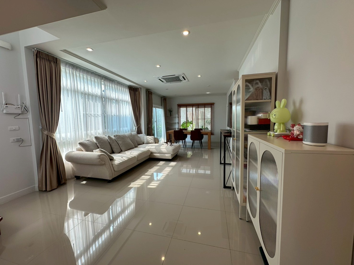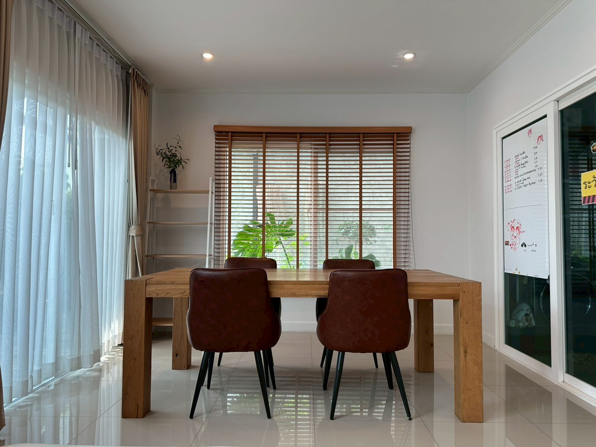 ราคา 5,900,000 ลบ. *** ต่อรองได้ *** ** ค่าใช้จ่ายวันโอน คนละครึ่ง หรือ ตามตกลง **ตกแต่งพร้อมอยู่ ***อายุบ้าน 4 ปี, เพื่อนบ้านน่ารัก, เงียบสงบ, ใกล้ตลาด, มี 7-11 หน้าหมู่บ้าน - ขนาดพื้นที่ 53.2 ตร.ว., พื้นที่ใช้สอย 152 ตร.ม. - 4 ห้องนอน 3ห้องน้ำ 2 ที่จอดรถยนต์ในบ้าน (ห้องนอนเล็ก ชั้นล่างสำหรับผู้สูงอายุ) - ต่อเติมหลังคารอบบ้าน ,เพิ่มพื้นที่ซักล้าง, รั้วรอบบ้าน รายการของแถม : - ผ้าม่านสั่งตัดทั้งหลัง - แอร์ 4 เครื่อง ชั้นล่างแอร์แบบผังเพดาน Daikin 30000BTU(4ทิศทาง) = 1เครื่อง , Daikin16000 BTU (4ทิศทาง)= 1 เครื่อง , 12000 BTU = 2 เครื่อง (เพิ่งติดตั้ง) - โซฟา Jas รุ่นใหญ่พิเศษ - โต๊ะรับทานอาหาร ไม้แท้ 4 ที่นั่ง - ต่อเติมเคาน์เตอร์ top หิน, เตาไฟฟ้าแบบฝังพร้อมฮู้ดดูดควัน Mex , ตู้built in, ชั้นวางของ, ซิงค์ล้างจานขนาดใหญ่ Mex และ พื้นที่เก็บของใต้ซิงค์ - ตู้เย็น 4 ประตู, เตาอบ Mex, เครื่องซักผ้าฝาหน้า - Built in ตู้เสื้อผ้า ขนาด 3 เมตร พร้อมโต๊ะเครื่องแป้ง (Master Bedroom) - เตียงนอน 6 ฟุต - เครื่องทำน้ำอุ่น 1เครื่อง - ปั๊มน้ำ + ถังน้ำสำรองบนดิน 1,500 ลิตร - ต่อเติมหลังคาโรงรถ จัดสวนรอบบ้าน 🚘 ระบบเข้า-ออก หมู่บ้าน - เข้า-ออกระบบ keycard - รปภ 24 ชั่วโมง 🚗 สะดวกสบายทุกการเดินทาง - หาดบางแสน 5 km. - ตลาดโค้งลูกทุ่ง 550 m. - ตลาดหนองมน 2.8 km. - เซ็นทรัล ชลบุรี 10 km. - เซ็นทรัล ศรีราชา 14 km. - โรงเรียนสารสาสน์ บางแสน 5.5 km. - motorway 2 km - มหาวิทยาลัย บูรพา 5 km - รพ.สมิติเวชชลบุรี 11 km. สนใจนัดชมบ้านติดต่อ ☎️ K ตรี : คลิกเพื่อดูเบอร์โทรติดต่อ (เจ้าของบ้าน)
