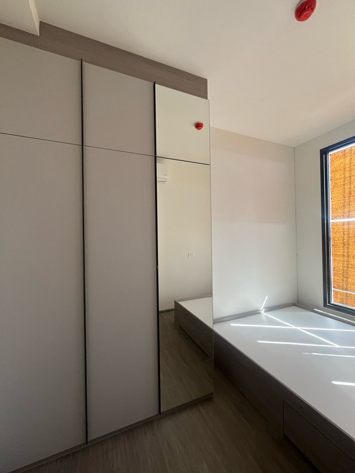 ห้อง Smart Kitchen 28 sq.m. -เครื่องปรับอากาศ 9000 BTU* -ฉากกั้นอาบน้ำ -ชุดครัว รวมเตาไฟฟ้าและเครื่องดูดควัน -ตู้บนตู้เย็น -ตู้รองเท้า -ตู้เสื้อผ้า -เตียงนอน 5 ฟุต -Digital door lock -Home Automation
