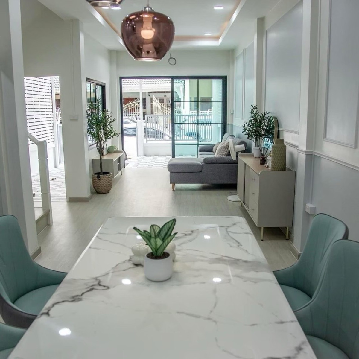 🏠 ให้เช่า‼️ทาวน์โฮมไซส์ใหญ่ ใจกลางลาดพร้าวตกแต่งพร้อมอยู่ ทำเลดีมากติดCDC เดินไปเซ็นทรัลอีสวิลล์ได้ ใกล้เอกมัย15 นาที🎉 . . 📍ตั้งอยู่ในหมู่บ้านปิด เกตุนุติเชอมิเน่ ติดเลียบด่วน เอกมัย-รามอินทรา ☑️ ขนาดพื้นที่ 20 ตรว. (พื้นที่ใช้สอย 200ตารางเมตร #เท่าบ้านเดี่ยว) ☑️4ห้องนอน 3 ห้องน้ำ ☑️หน้ากว้าง 5.5 เมตร ถนนหน้าบ้านกว้าง 6 เมตร ☑️จอดรถในบ้าน1คัน หน้าบ้าน 1 คัน ☑️ มีรปภ. รักษาความปลอดภัย 24 ชั่วโมง เข้าออกด้วยระบบสแกนทะเบียน 🏠มาพร้อมการรีโนเวทแบบจัดเต็ม เปลี่ยนใหม่ให้ทุกอย่างเหมือนมือ1 ‼️ ☑️เปลี่ยนฝ้าเพดานฉาบเรียบ พร้อมหลุมซ่อนไฟ ☑️เดินระบบน้ำไฟใหม่ทั้งหมด ☑️พื้นSPCลายไม้อบอุ่น ☑️เปลี่ยน กระเบื้องและสุขภัณฑ์ห้องน้ำยกชุด . . 💁🏻♀️เฟอร์นิเจอร์และของตกแต่งชั้น1 เหมือนบ้านตัวอย่างโครงการหรู😍‼️ ☑️โซฟาตัวแอลจาก JYK ☑️ ชั้นวางทีวี และ Sideboard จาก INDEX ☑️ ชุดโต๊ะรับประทานอาหาร จาก SB ☑️ ฮูดดูดควันและเตาแก๊ส EVE ☑️ ถังเก็บน้ำ 400 ลิตร SCG ☑️ ปั๊มน้ำ 300 วัตต์ Hitachi . . 🙋🏻♀️ทำเลดีสุดๆ รายล้อมด้วยห้าง ร้านอาหาร และสิ่งอำนวยความสะดวกมากมาย ☑️ หมู่บ้านติดกับรั้ว CDC ☑️ใกล้เลียบด่วนรามอินทรา เพียง300เมตร ☑️ใกล้เซ็นทรัลอิสวิวล์เพียง 750 เมตร ☑️ใกล้จุดขึ้นลงทางด่วนไม่ถึง1กิโล ☑️ใกล้ Homepro Lotus Macro เลียบด่วน ☑️ ใกล้โรงเรียนเอกชนชื่อดังและโรงเรียนนานาชาติมากมาย . . 🚩เช่า 32,000/เดือน ✨😊 สัญญาขั้นต่ำ 1 ปี . เพิ่มเติมตอนนี้ติดแอร์ 1 ห้องนอน และชั้นล่าง 1 เครื่อง, ติดมู่ลี่ และผ้าม่าน, เฟอร์นิเจอร์ในห้องนอน 1 ห้องนอน Contact : Khun Nae 📞 คลิกเพื่อดูเบอร์โทรติดต่อ Line Official 👉🏻https://lin.ee/0tokaNY
