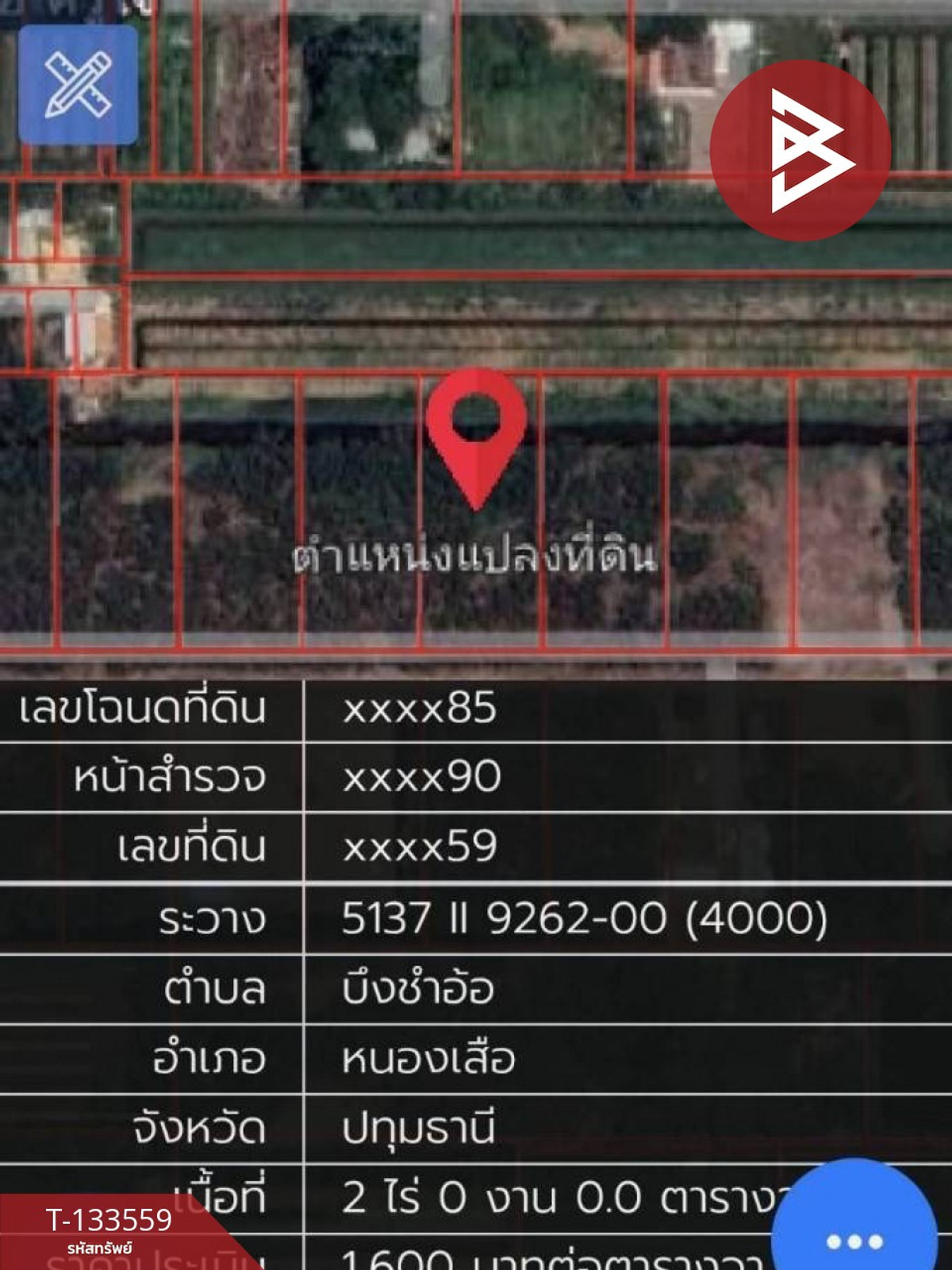 ที่ดิน : หนองเสือ ปทุมธานี ที่ตั้ง : ซ. ป.การเกษตร ต.บึงชำอ้อ อ.หนองเสือ จ.ปทุมธานี รหัสทรัพย์ : T-133559 ประเภท : ที่ดิน เนื้อที่ : 2 ไร่ 0.0 ตารางวา กว้าง : 40.00 เมตร ลึก : 80.00 เมตร รายละเอียดเพิ่มเติม : ที่ดินแปลงสวย ปลูกบ้านสวยงาม เงียบสงบ ราคา : 2,800,000 บาท ลิงค์แผนที่ : https://maps.google.com/?q=14.13954351,100.78683101 **เรามีบริการจัดสินเชื่อให้ฟรี พร้อมยินดีให้คำปรึกษา มีให้เลือกทุกธนาคาร** **พร้อมอัตราดอกเบี้ยพิเศษ และ วงเงินสูงสุด 90-100% ของราคาประเมิน** สนใจสอบถามข้อมูลเพิ่มเติม หรือ นัดชมบ้านได้ที่ Tel : คลิกเพื่อดูเบอร์โทรติดต่อ พิมพ์ (รหัสตัวแทน 5828) Line ID : คลิกเพื่อดูเบอร์โทรติดต่อ Callcenter : คลิกเพื่อดูเบอร์โทรติดต่อ สนใจดูทรัพย์อื่นๆ เพิ่มเติม มากกว่า 3,000 รายการ www.tb.co.th The Best Property Agent CO,.LTD. ผู้นำด้านธุรกิจนายหน้า ตัวแทนอสังหาริมทรัพย์ครบวงจร ด้วยความเป็นมืออาชีพ ใช้เทคโนโลยี และ นวัตกรรมที่สร้างสรรค์ เพื่อส่งมอบบริการที่ดีที่สุดเพื่อคุณ ให้บริการด้าน ซื้อ ขาย เช่า อสังหาริมทรัพย์