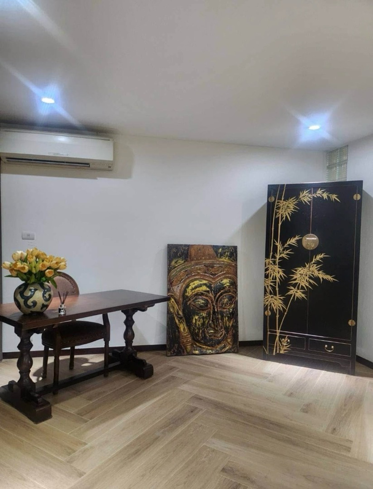 ให้เช่าทาวน์โฮมขนาดใหญ่ 4 ชั้น Garden House Rama3 บ้านสวย วิวสวน สงบ ร่มรื่น แต่งแบบ Thai oriental style พื้นไม้จริง เฟอร์นิเจอร์ครบ บิ้วอินทั้งหลังสวยมาก (เพิ่ง Renovate เสร็จ) ชื่อโครงการ : หมู่บ้านการ์เด้นเฮ้าส์ [Garden House Rama3] ที่ตั้ง : ซอยนราธิวาสราชนครินทร์30 แขวงช่องนนทรี เขตยานนาวา กรุงเทพฯ ให้เช่าทาวน์โฮม 4 ชั้น หมู่บ้าน Garden House ใจกลางพระราม3 แต่งแบบ Thai oriental style พื้นไม้สะสมหายาก บิ้วอินทั้งหลัง เฟอร์นิเจอร์ครบแบบพร้อมอยู่ โครงการสวยมีสวนส่วนกลางและสระว่ายน้ำขนาดใหญ่ลอยฟ้า สวยสงบ แต่อยู่ใจกลางเมือง ใกล้สาทรแค่ 5 นาที - ขนาดพื้นที่ : 34 ตรว พื้นที่ใช้สอยรวม 400 ตรม 5 ห้องนอน, 5 ห้องน้ำ, 1 ห้องนั่งเล่นวิวสวน, 1 ห้องครัว, 1 ห้องทานอาหาร, 1 ห้องซักรีด - เฟอร์นิเจอร์ : เฟอร์นิเจอร์บิ้วอินทั้งหลัง เฟอร์นิเจอร์ครบ ตู้,เตียง,โซฟา,โต๊ะกินข้าว,ตู้เย็น,เตาอบ,เตาแก๊ส,เครื่องดูดควัน,เครื่องทำน้ำร้อน,Tv,แอร์ 9 เครื่อง,จอดรถ 3 คัน - สิ่งอำนวยความสะดวก : รปภ 24 ชม , สระว่ายน้ำขนาดใหญ่ , สวนส่วนกลาง สงบ ร่มรื่น สถานที่ใกล้เคียง : สาทร 5 นาที /BTS ช่องนนทรี /BRT ถนนจันทน์/ทางด่วน/ห้างเซ็นทรัลพระราม3/โรงเรียนนานาชาติ King’s College , Shuberry International School , NSIS ⭐️ใช้อยู่อาศัยเท่านั้น, ไม่อนุญาตให้เลี้ยงสัตว์⭐️ ราคาเช่า : 80,000 บาท/เดือน สัญญาขั้นต่ำ 2 ปี [เงินประกัน 2 เดือน ล่วงหน้า 1 เดือน] 📞 For more information please contact me คลิกเพื่อดูเบอร์โทรติดต่อ (Pim agent) Line:chana4188 Email: คลิกเพื่อดูอีเมล