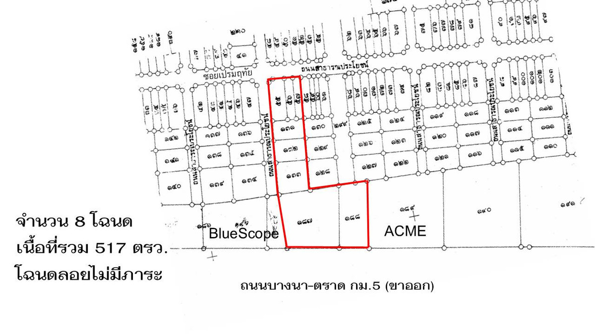 ขายที่ดิน ติดถนนบางนา-ตราด พร้อมสิ่งปลูกสร้าง เนื้อที่ 517 ตรว. ที่ตั้ง แขวงบางนาใต้ เขตบางนา กรุงเทพมหานคร 10260 รายละเอียด - เนื้อที่ 517 ตรว. -หน้ากว้างติดถนน 40 ม. ด้านหลัง 15 ม. ลึก 82 ม. -รวม 8 โฉนด โฉนดลอยทั้งหมด -โซนพื้นที่สีส้ม ย.6 เหมาะทำโชว์รูม, ร้านอาหาร,ออฟฟิศ, รพ.ขนาดเล็ก, สถานเสริมความงาม สถานที่ใกล้เคียง -Index,SBDesign,CentralBangna,BigC,MegaBangna,IKEA -โรงพยาบาลศิครินทร์,โรงพยาบาลไทยนครินทร์,โรงพยาบาลใหญ่ติดถนนบางนา-ตราด -MRTสถานีศรีเอี่ยม (สายสีเหลือง) -ทางด่วนบูรพาวิถี,ทางพิเศษเฉลิมมหานคร -อยู่ติดถนนบางนา-ตราด ช่วง กม.5 ฝั่งขาออก ปัจจุบันมีสิ่งปลูกสร้างเป็นร้านอาหารระเบียงทะเล ราคา 149,930,000 ลบ 290,000 ต่อ ตรว. * ถูกกว่าแปลงอื่นๆย่านนั้นที่ขายกัน ตรว.ละ 350,000 - 400,000 * สนใจติดต่อเบอร์ 061.915.6619 088.569.8966 Line ID : @wanvisarproperty T.415