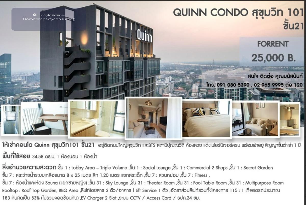 Condo for Rent: QUINN Sukhumvit 101 Near BTS Punnawithi (approx. 300 meters) Rent Price: 22,000 Baht / month Room Details: 1 Bedroom 1 Bathroom Size: 35 sq.m. Floor: 21 Rental Terms: Minimum 1-year contract 2 months deposit + 1 month rent in advance Notes: นัดชมห้องได้ รับโอนจองผ่านบัญชีเจ้าของห้องโดยตรง ขออนุญาตให้สิทธิท่านที่โอนจองก่อนนะคะ Contact: Tel. คลิกเพื่อดูเบอร์โทรติดต่อ WhatsApp: คลิกเพื่อดูเบอร์โทรติดต่อ Line ID: @ c o n d o b k k Email: คลิกเพื่อดูอีเมล Facebook Messenger: m.me/ คลิกเพื่อดูเบอร์โทรติดต่อ Home Property Consulting Co., Ltd.