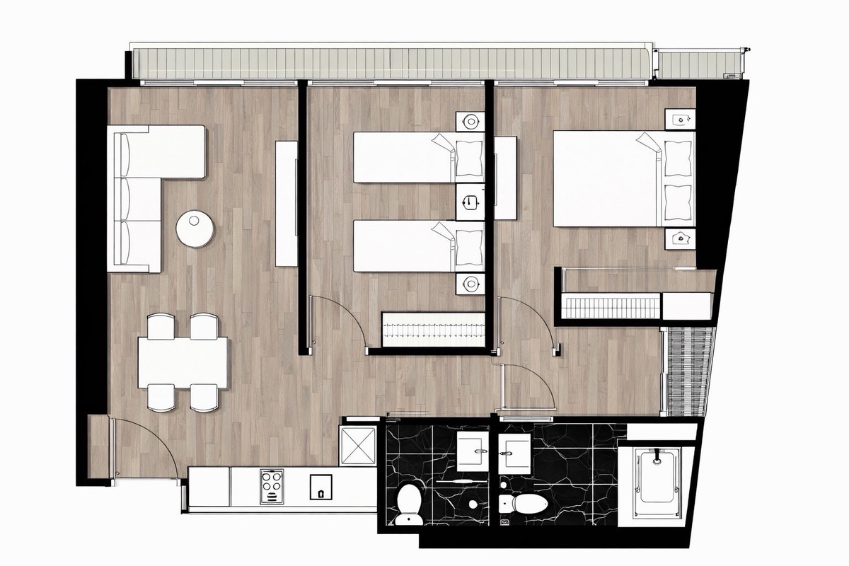 ◈ Park 24 ◈ Size: 67 sq.m. •2 Bedrooms, 2 Bathrooms Floor: 47Corner Unit
