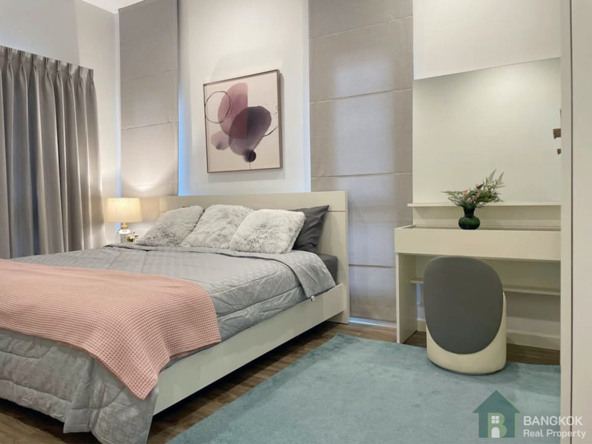 บ้านเดี่ยวสุดหรูขนาดใหญ่สำหรับครอบครัว พร้อมแผงโซลาร์เซลล์บนหลังคา ให้เช่าที่บูรสิริ กรุงเทพมหานครทำเลที่ตั้งดีเยี่ยมบนซอยประชาร่วมใจ ใกล้ถนนพระราม 9 และห่างจากสถานีรถไฟฟ้า MRT แหกลำสาลี (สายสีเหลือง)